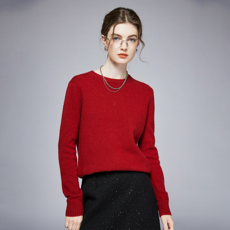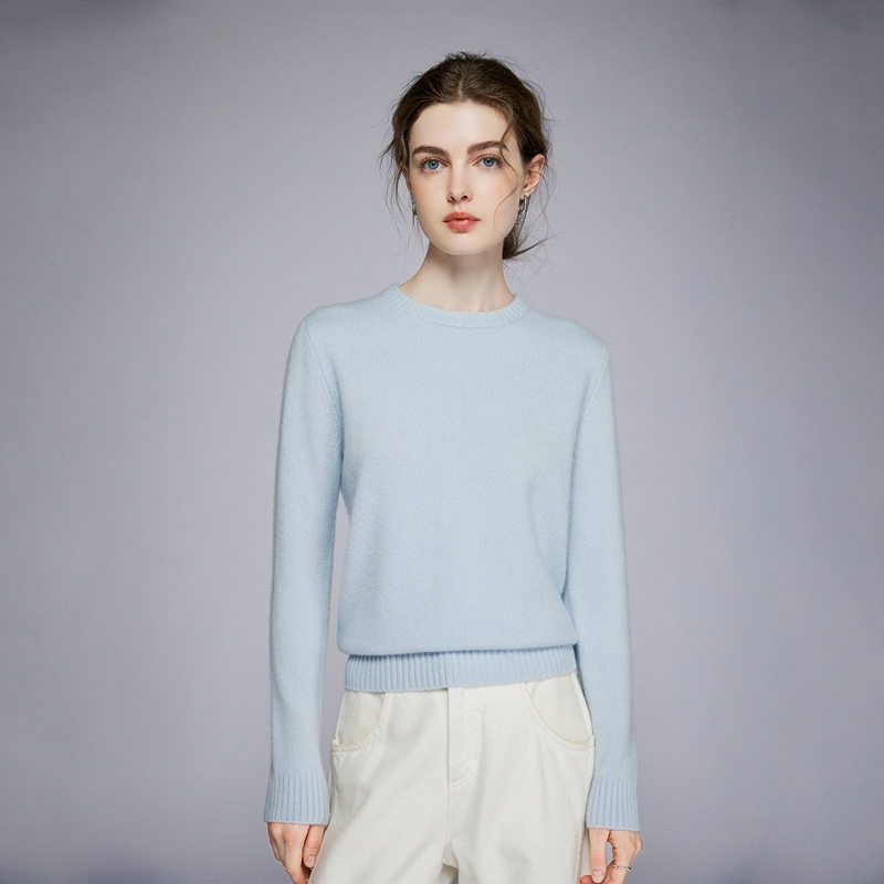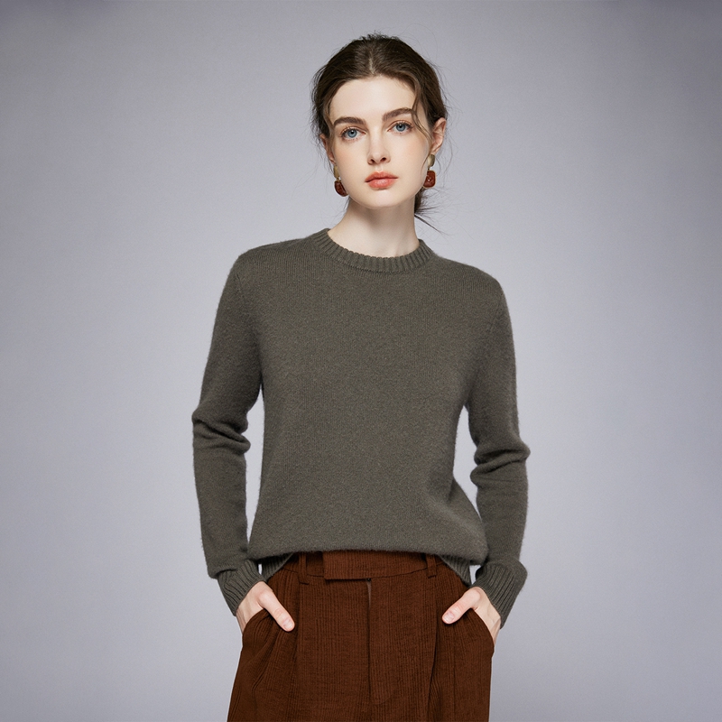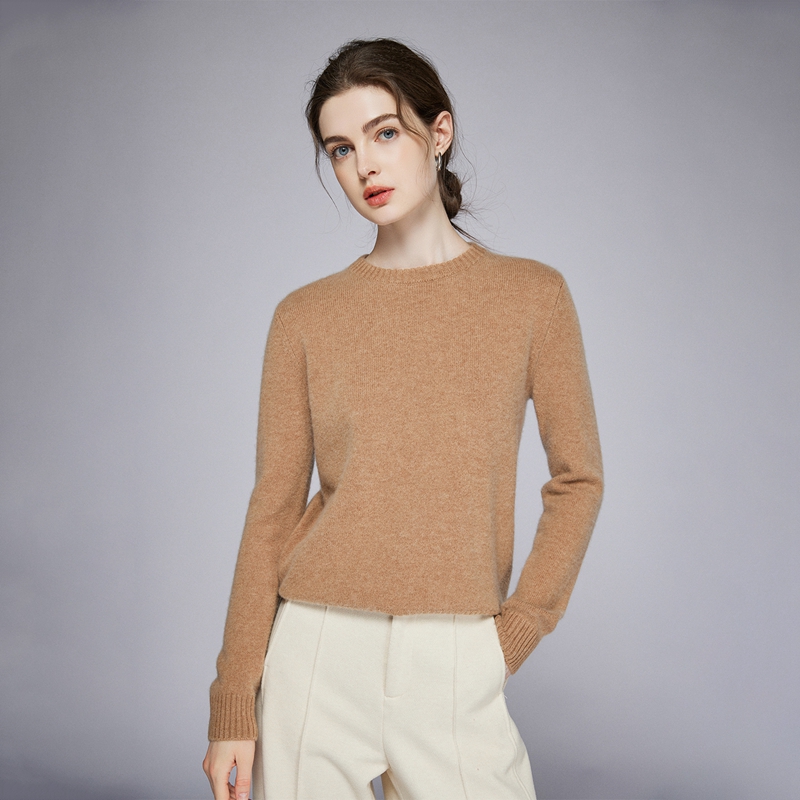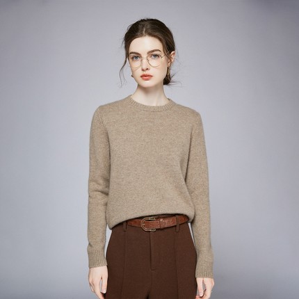 2025年秋冬新款山羊绒衫女圆领加厚宽松纯色针织打底毛衣羊毛上衣