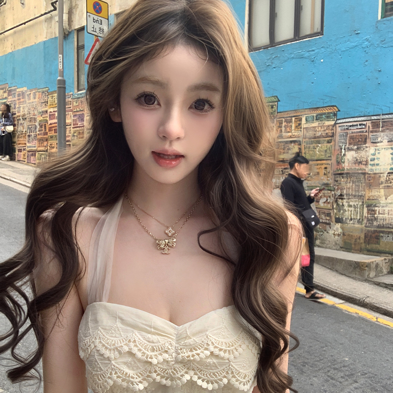 你的懒懒llan【夏树梨花】两色性感蕾丝刺绣花边挂脖连衣裙女新款