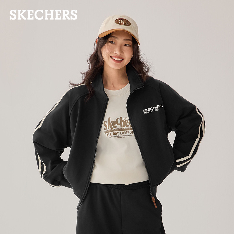 斯凯奇春季流行时尚女短款针织外套运动休闲小个子夹克立领棒球服