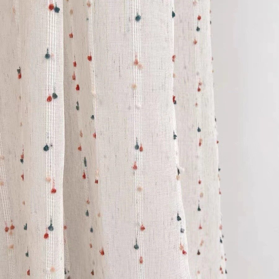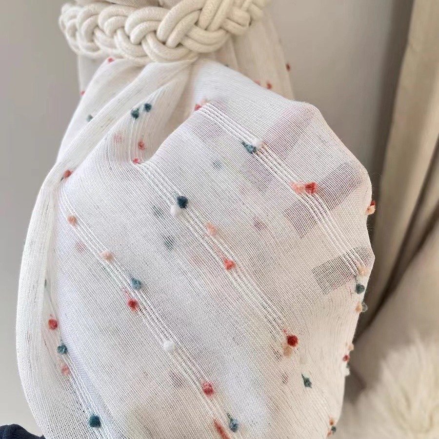 复古甜豆纱窗纱帘中古法式亚麻可爱儿童房窗帘卧室纱