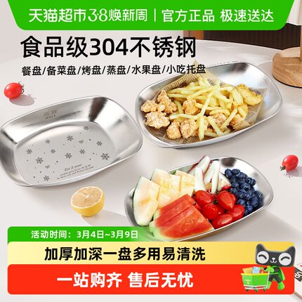 WOOTII不锈钢长方形盘子备菜盘小吃餐盘火锅配菜盘水果盘烧烤肉盘