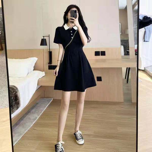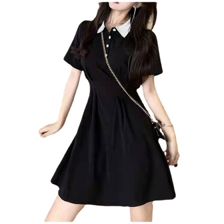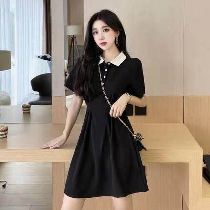 法式复古赫本风黑色短裙春夏2023新款收腰显瘦小个子短袖连衣裙女