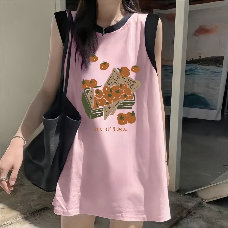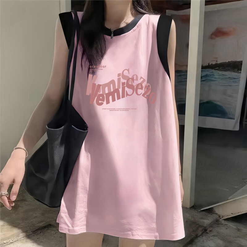 纯棉多巴胺吊带运动背心女外穿夏2025新款无袖t恤中长款大码上衣