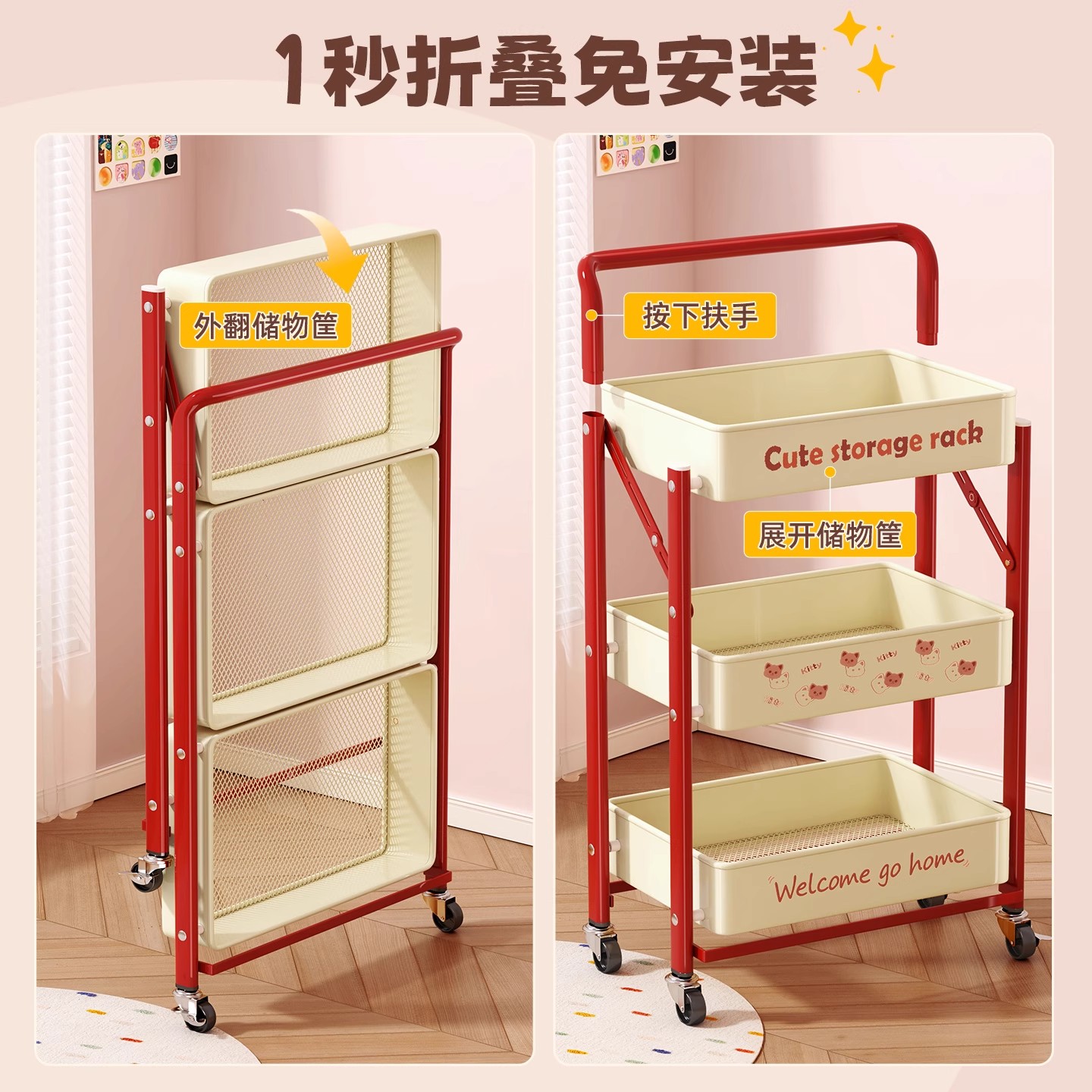 多巴胺可折叠小推车多层零食置物架落地厨房卧室书架收纳架子