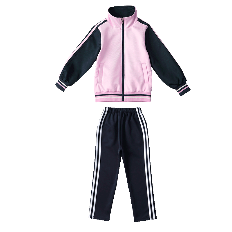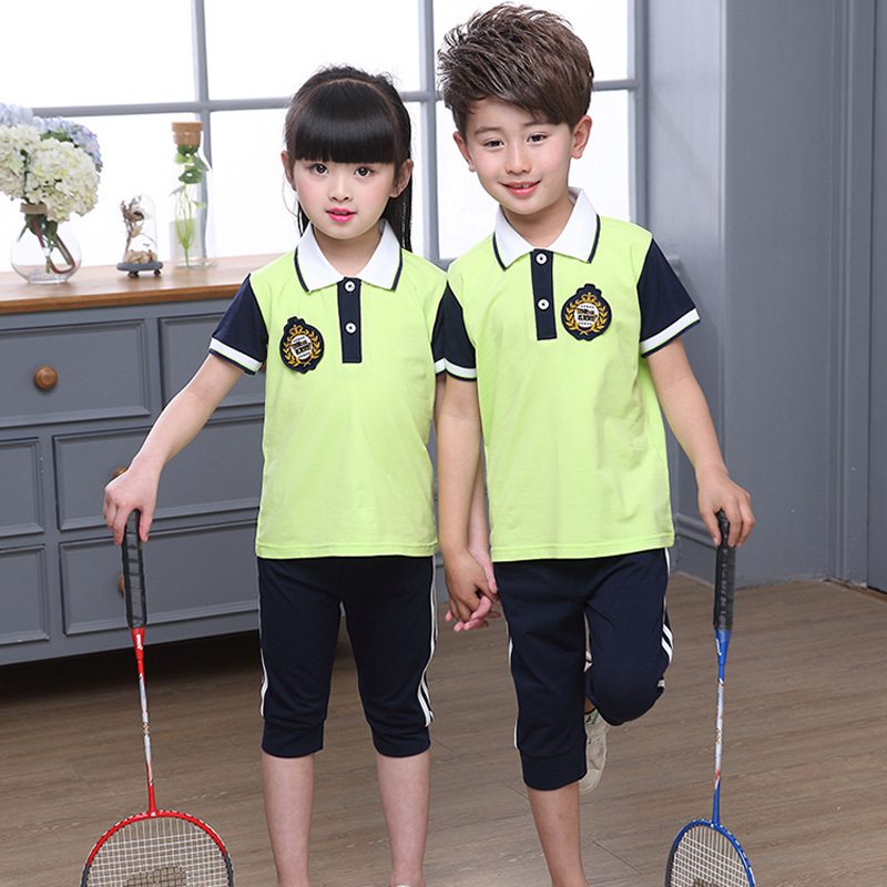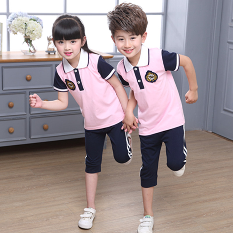 短袖装夏季款男女童4年级运动班服套装英伦风纯棉粉色老师夏装