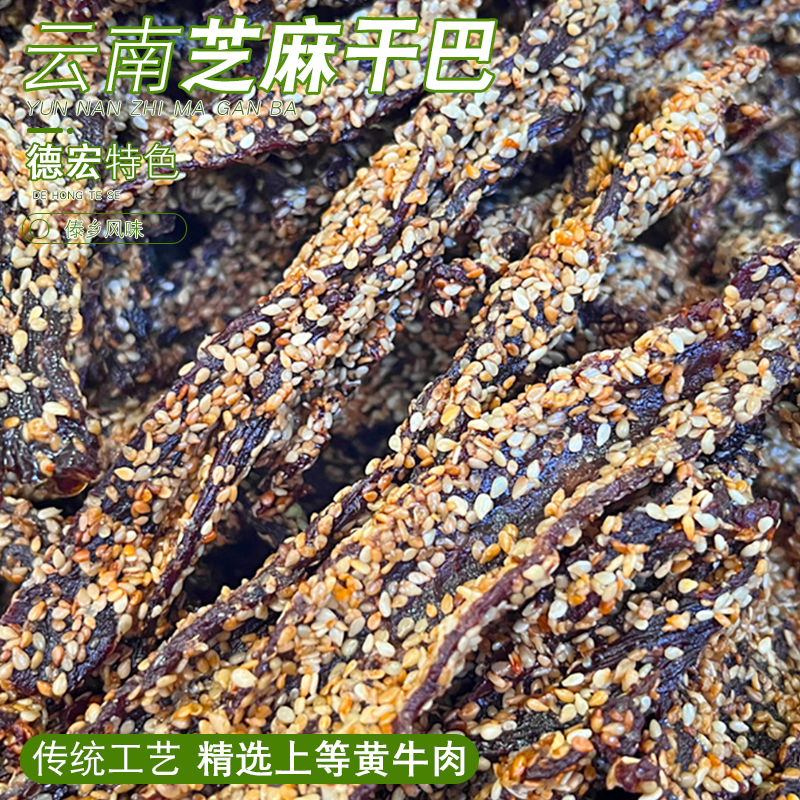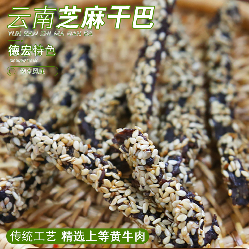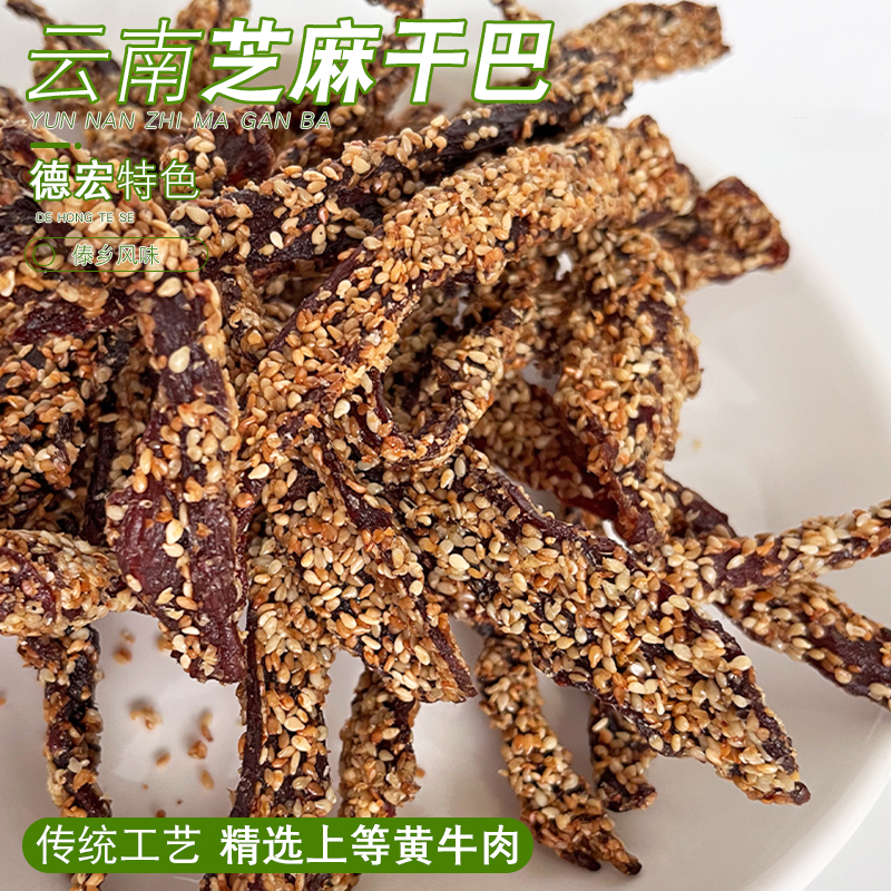 云南德宏特产傣味火烧芝麻干巴麻辣五香手撕牛肉香干巴零食