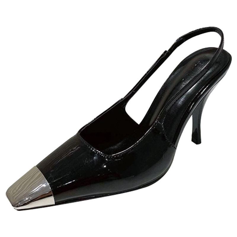方头后空高跟鞋2024新款细跟金属包头时装凉鞋名缓法式女断码清仓