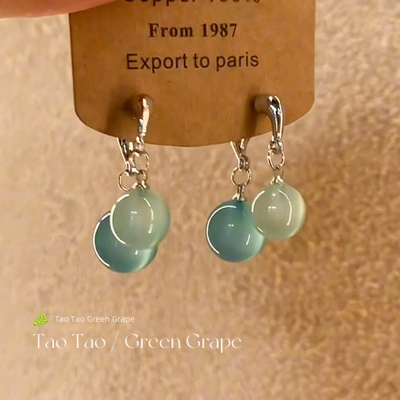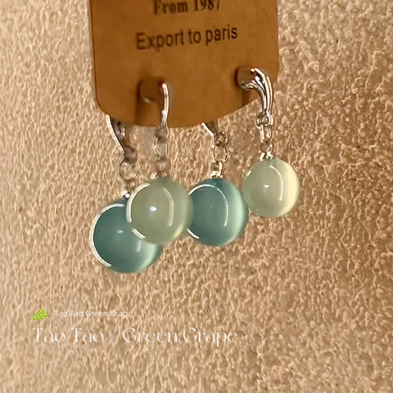 清凉一夏~冰透感圆球交叉耳环女独特2025新款高级感小众耳钉耳饰