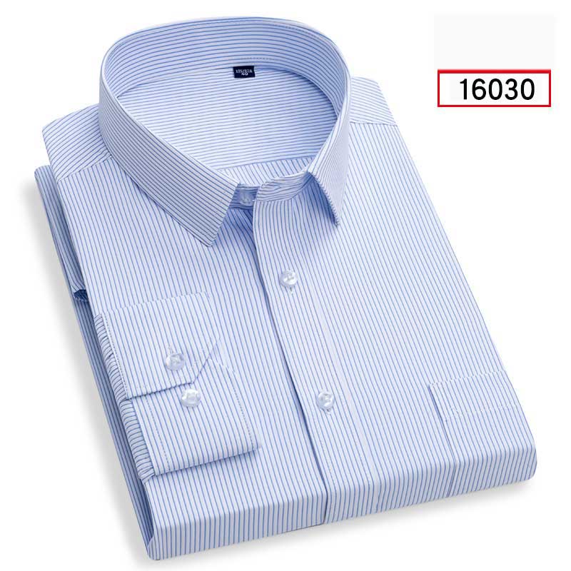 春季男士长袖衬衫薄款中年男士条纹衬衣纯棉商务正装职业工装免烫