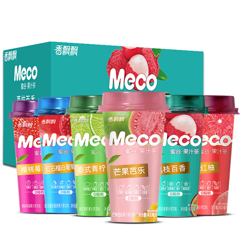 香飘飘奶茶meco蜜谷果汁茶饮料15杯整箱荔枝百香红柚青柠檬果味茶