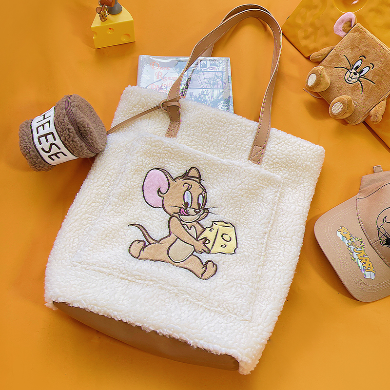 华纳正版AFGH猫和老鼠Jerry杰瑞托特包可爱毛绒手提包奶酪罐挂袋