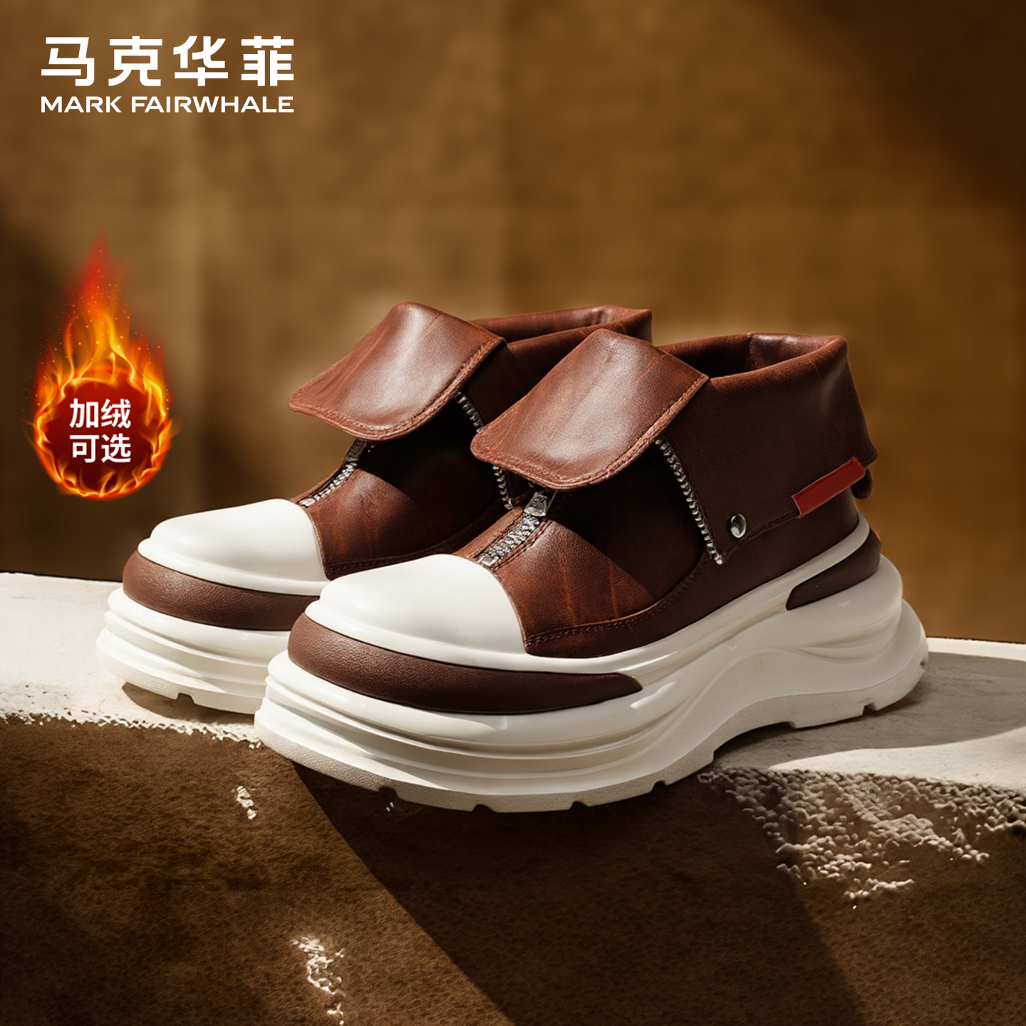 马克华菲高帮鞋子男鞋2025新款冬季加绒加厚棉鞋男款高级马丁靴男