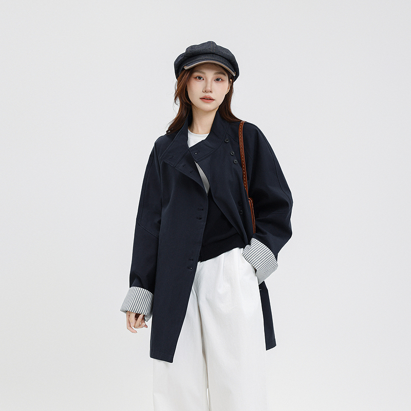 记忆的起点时尚风衣2025秋季新款休闲宽松中长款外套女69GQ73669W