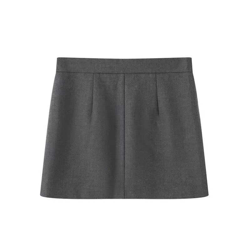 小艾!2025秋冬新款时尚百搭修身显瘦高腰灰色A字裙半身裙短裙女