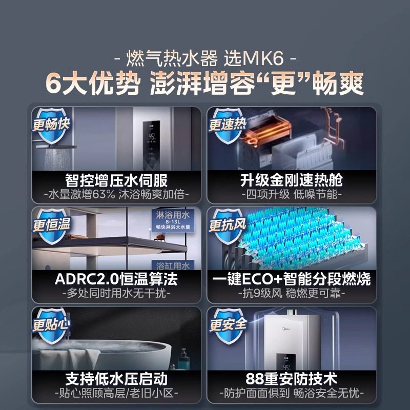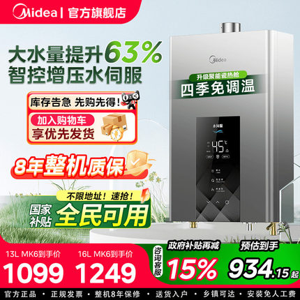 全民补贴美的燃气热水器智控恒温水伺服13L16升即热家用天然气MK6