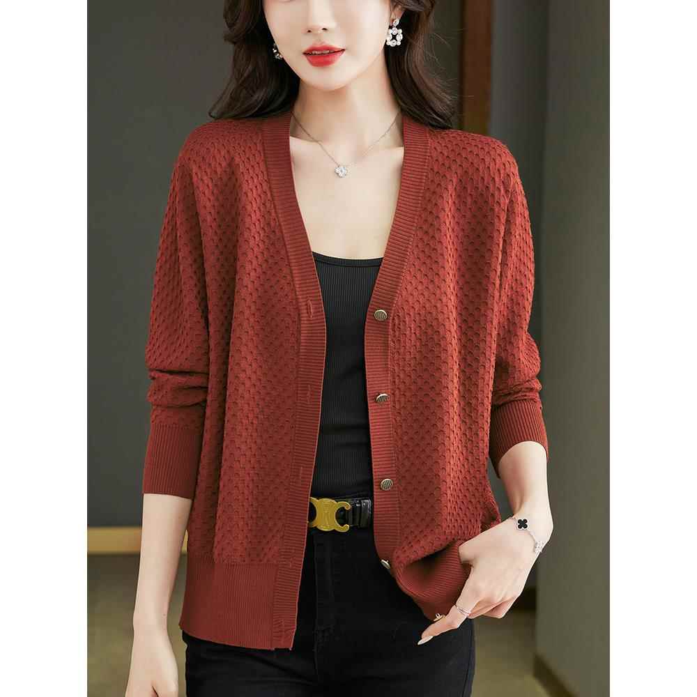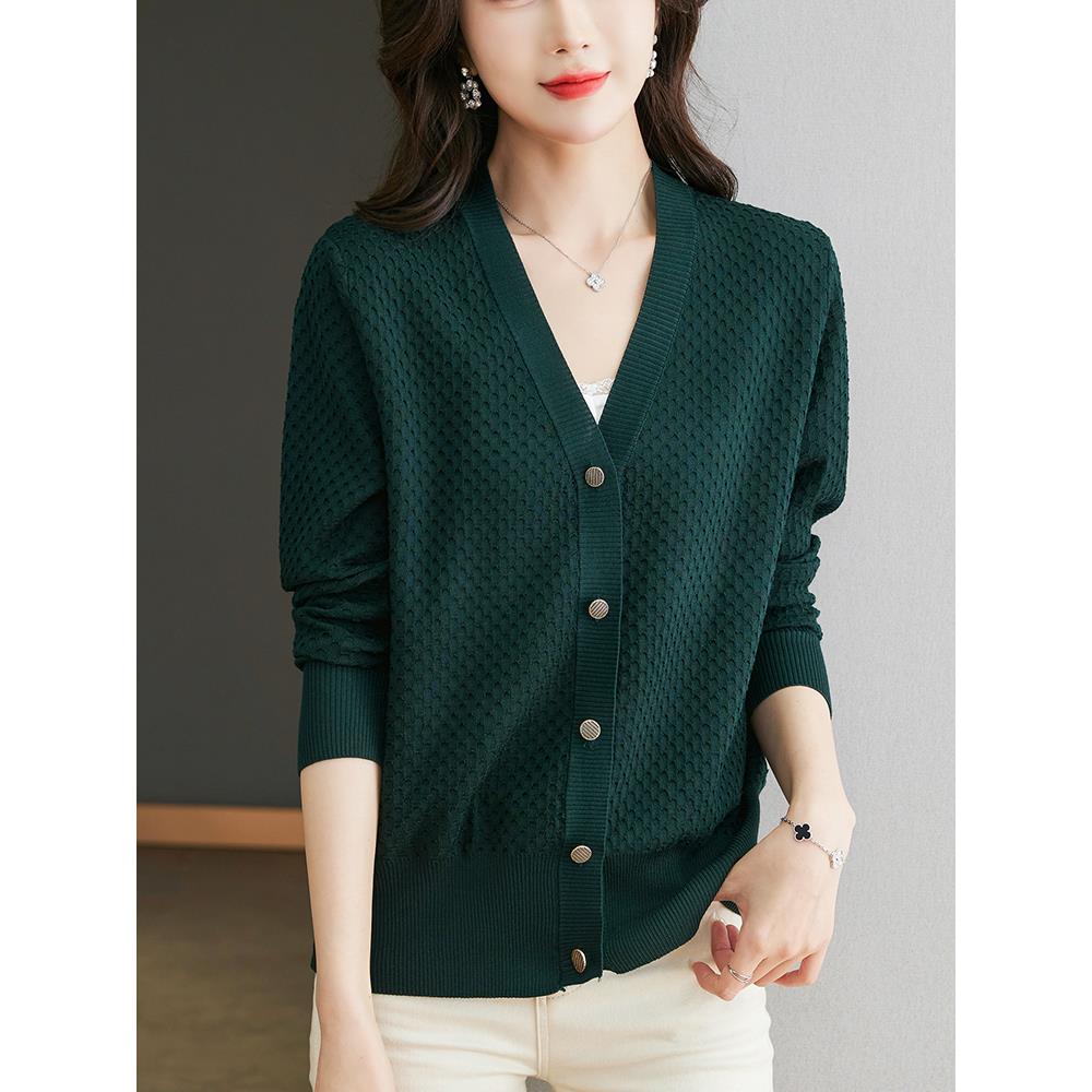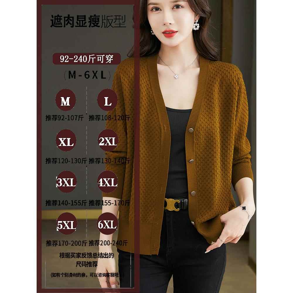 胖mm春秋特大码薄外搭桑蚕丝针织开衫女宽松V领长袖毛衣外套上衣
