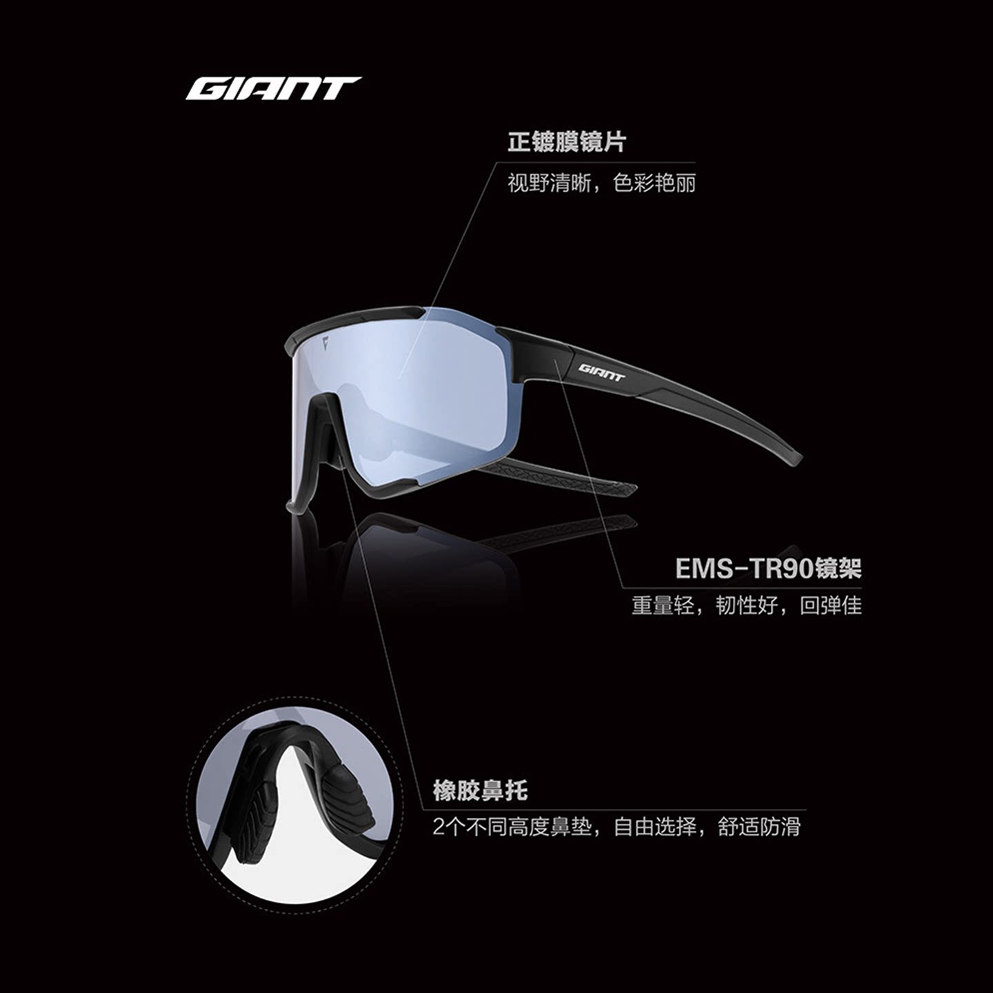 捷安特Breeze和风高对比款全镀膜带近视框骑行眼镜户外自行车装备