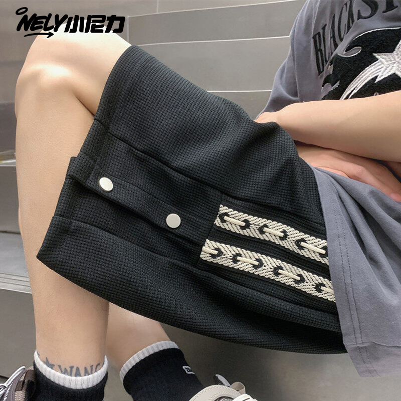 NELY小尼力美式排扣华夫格运动短裤男生夏季宽松五分大码休闲中裤