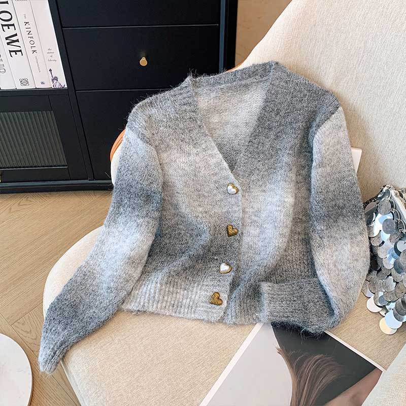 2024毛衣女秋冬新款时尚修身显瘦外套针织毛衣拼色渐变收腰上衣