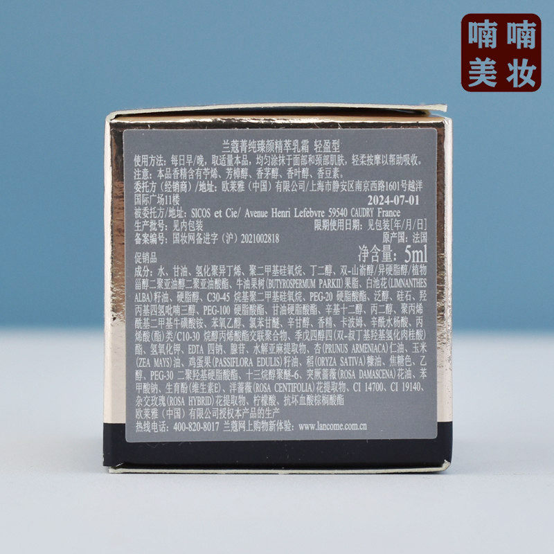 稀缺!兰蔻菁纯臻颜精萃乳霜5ml小样 轻盈版面霜紧致淡纹抗老清爽