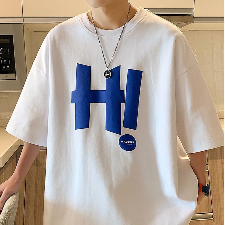 夏季重磅潮流简约宽松短袖恤男百搭字母印花打底衫短袖