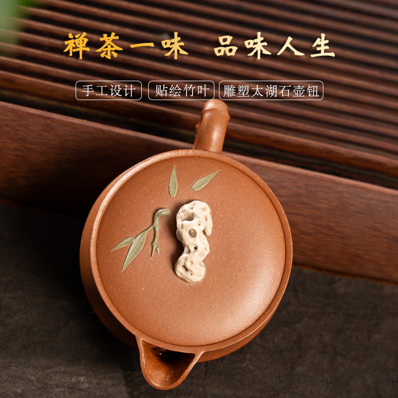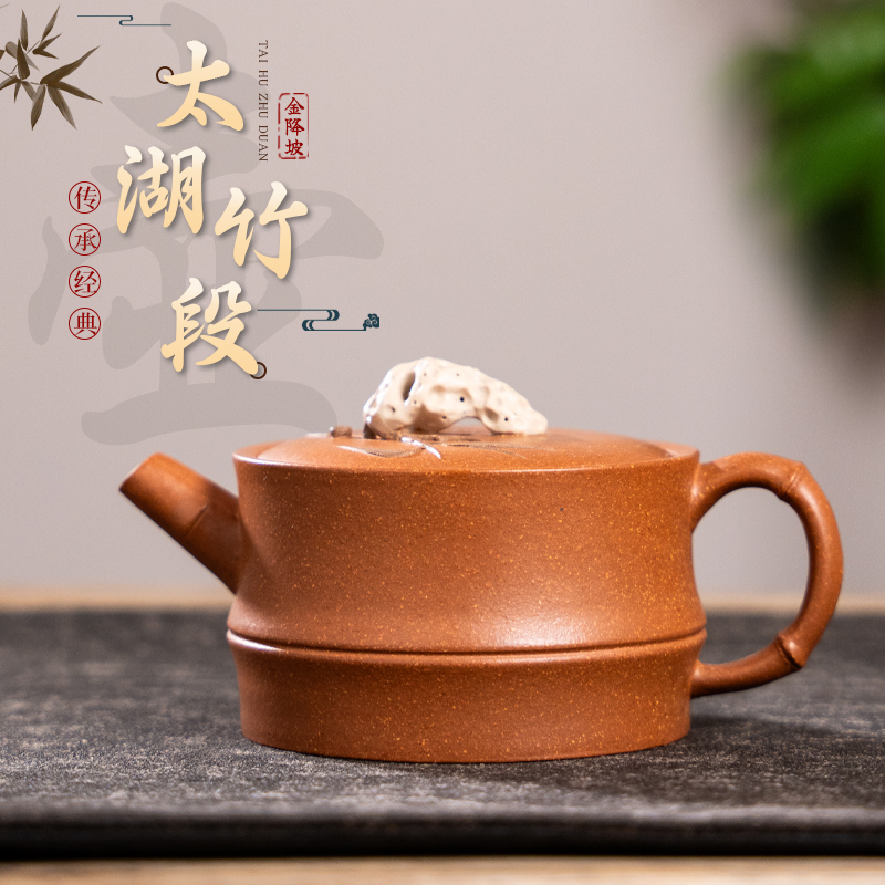 宜兴紫砂壶纯手工降坡段泥太湖石竹段壶家用大小容量花器泡茶壶