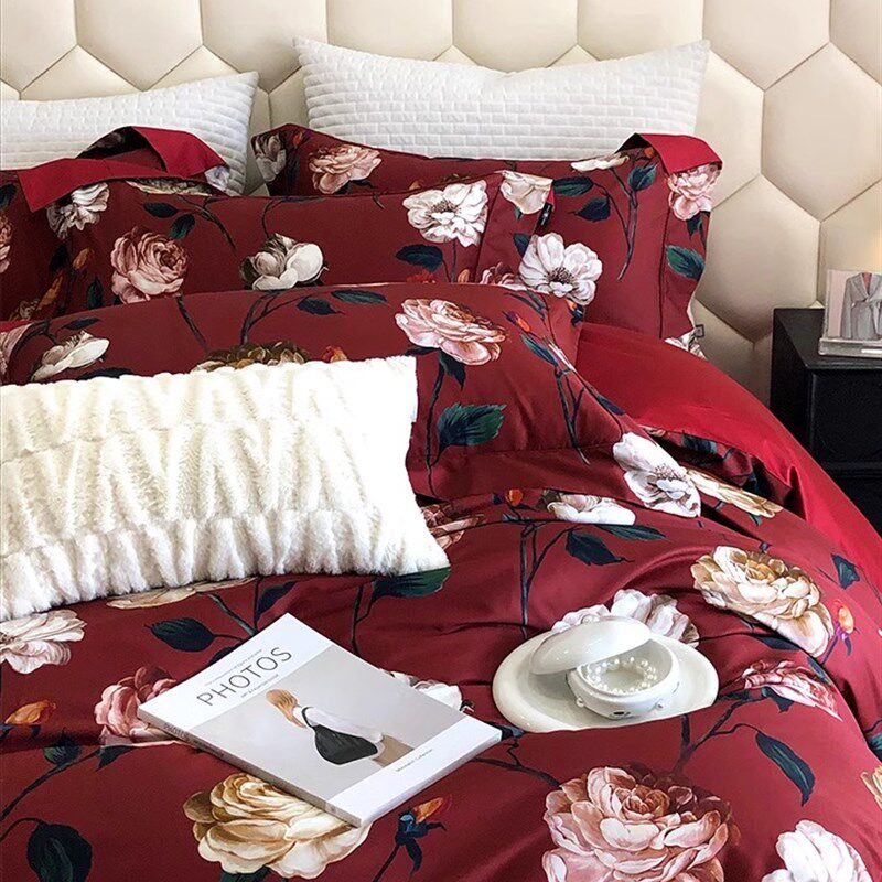 田园风100支长绒棉床单四件套全棉被套结婚婚庆床上用品
