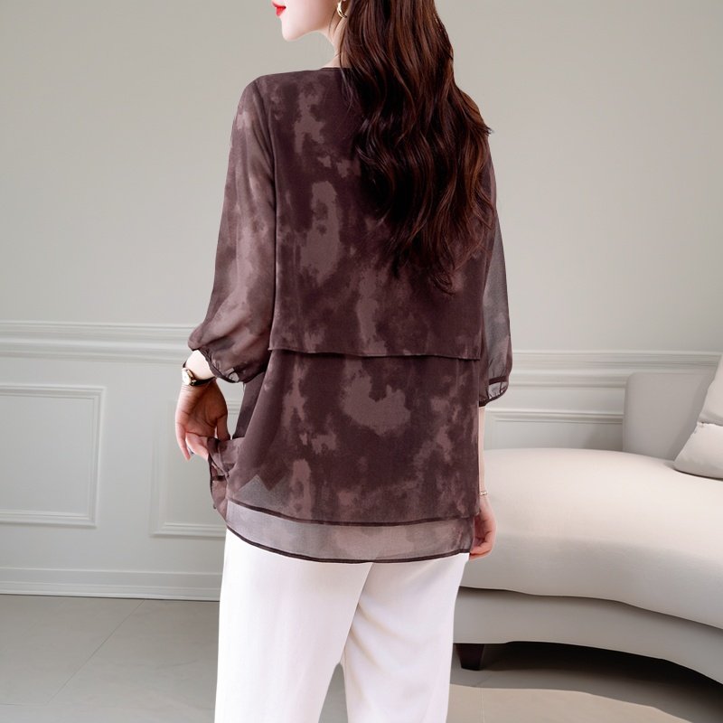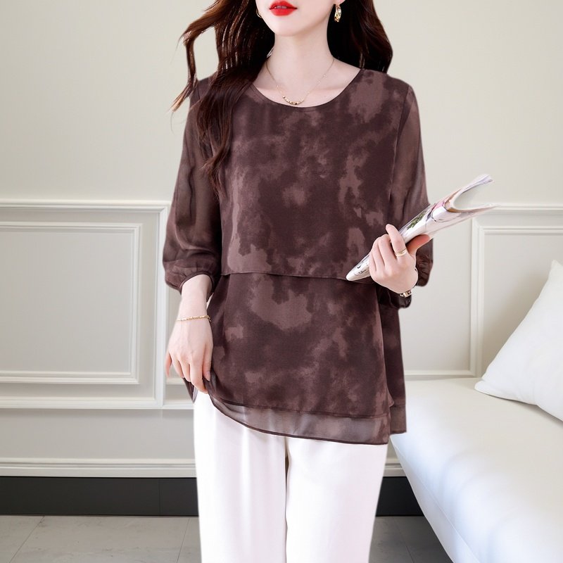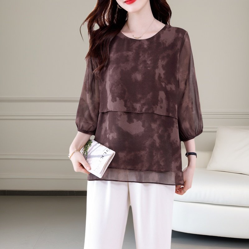 七分袖妈妈雪纺衫女夏季2025新款上衣胖MM宽松大码遮肚显瘦小衫女