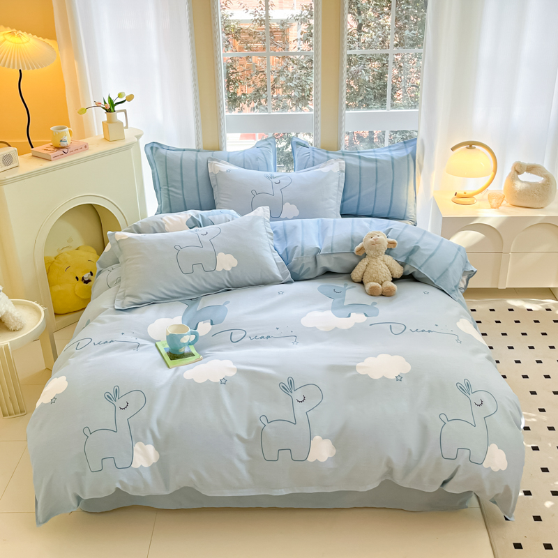 远梦家纺纯棉四件套100%全棉被套防滑床罩床单人学生宿舍三件套4