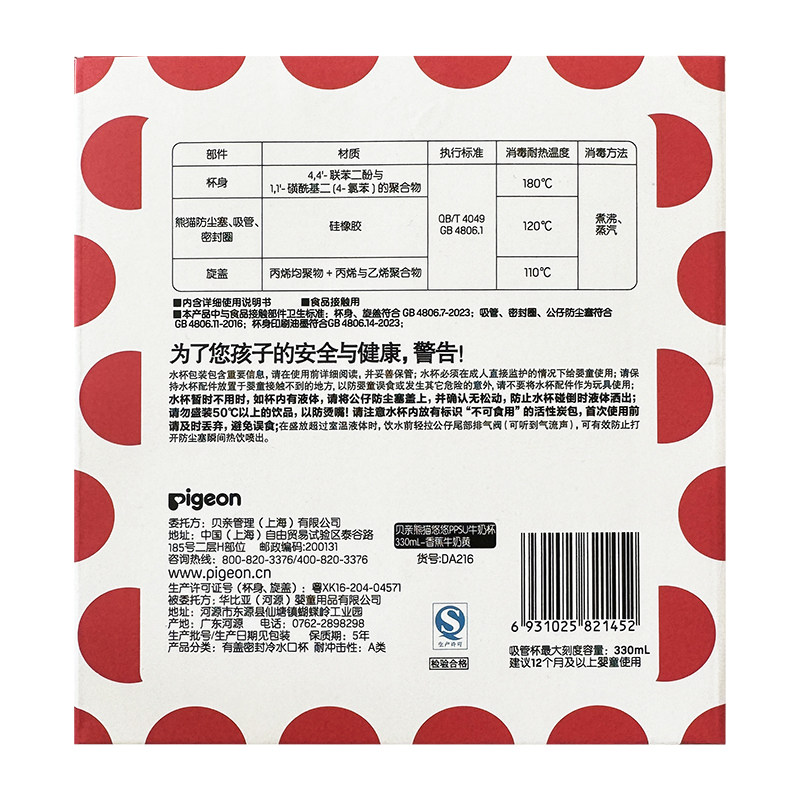贝亲熊猫悠悠PPSU牛奶杯宝宝餐桌喝水杯随餐杯吸管杯卡通
