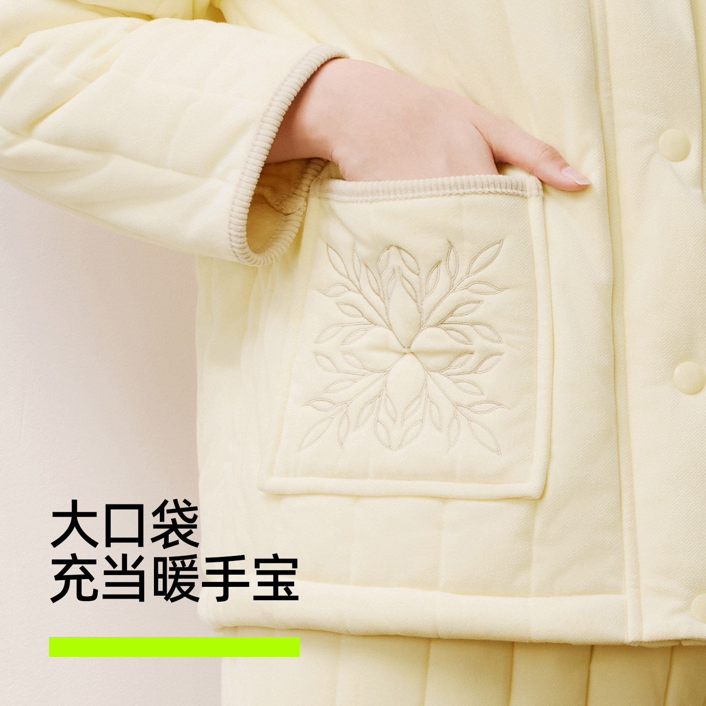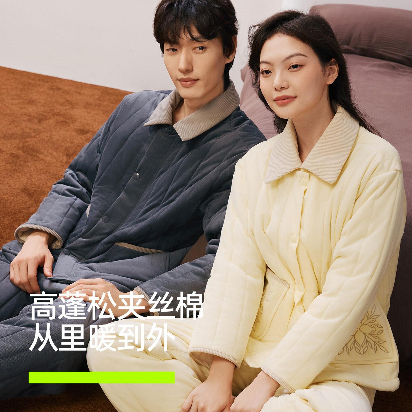 有棵树夹棉睡衣女款三层加绒加厚抗静电2025秋冬家居服套装睡衣男