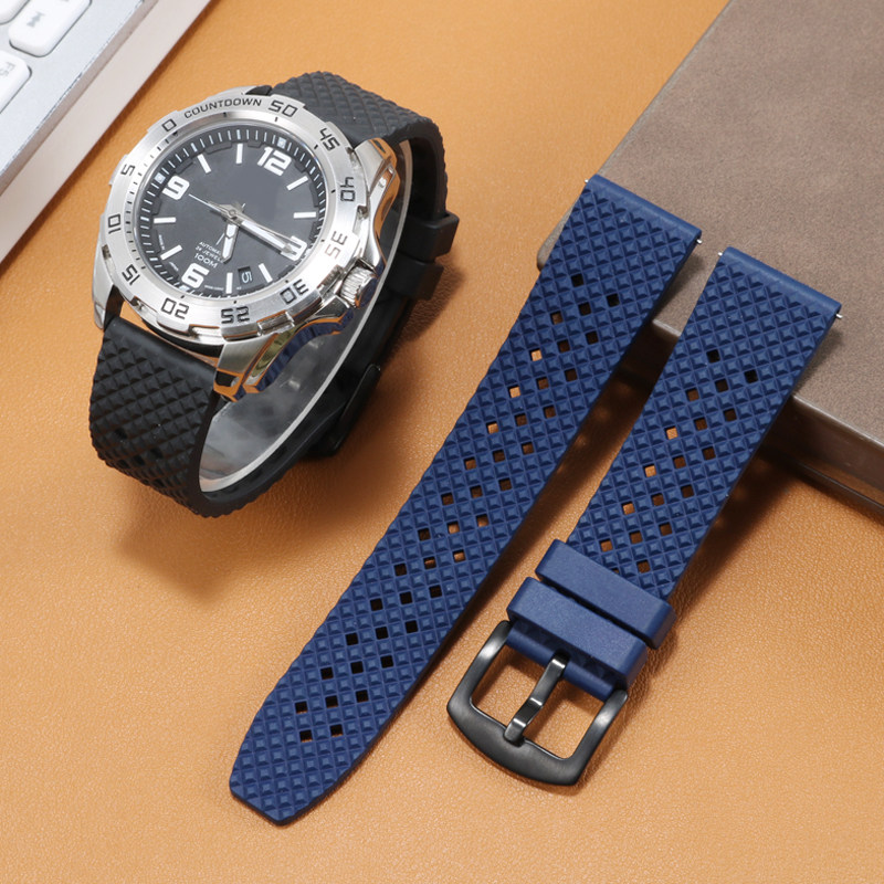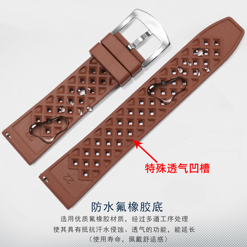 氟橡胶柔软表带适配精工浪琴天梭西铁城美度水鬼欧米茄男女士表链