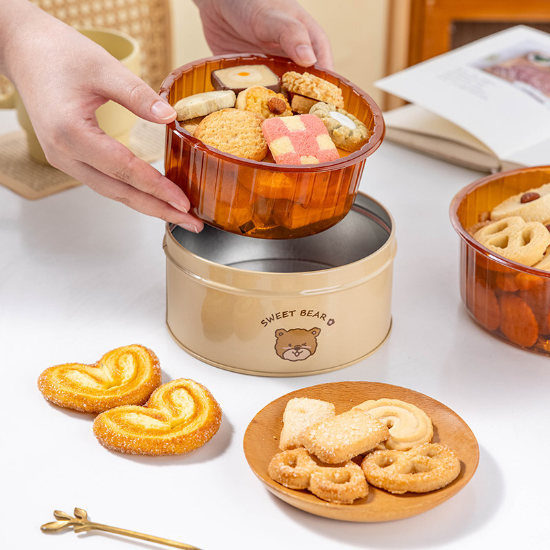 圆形铁罐内托可爱风糖果曲奇饼干包装盒点心盒底托巧克力铁盒礼罐
