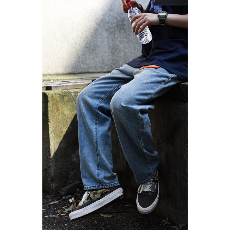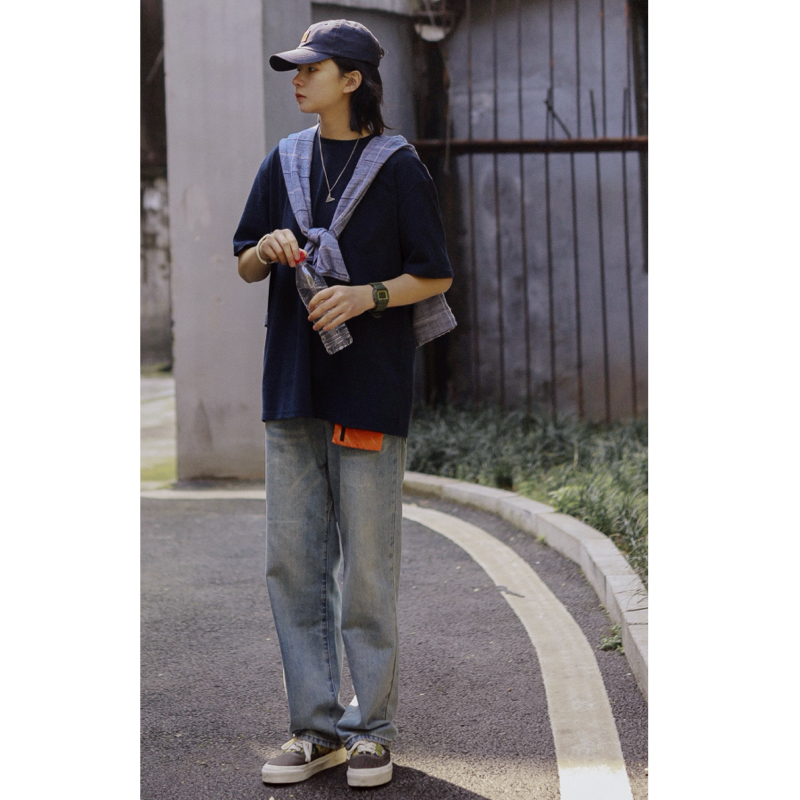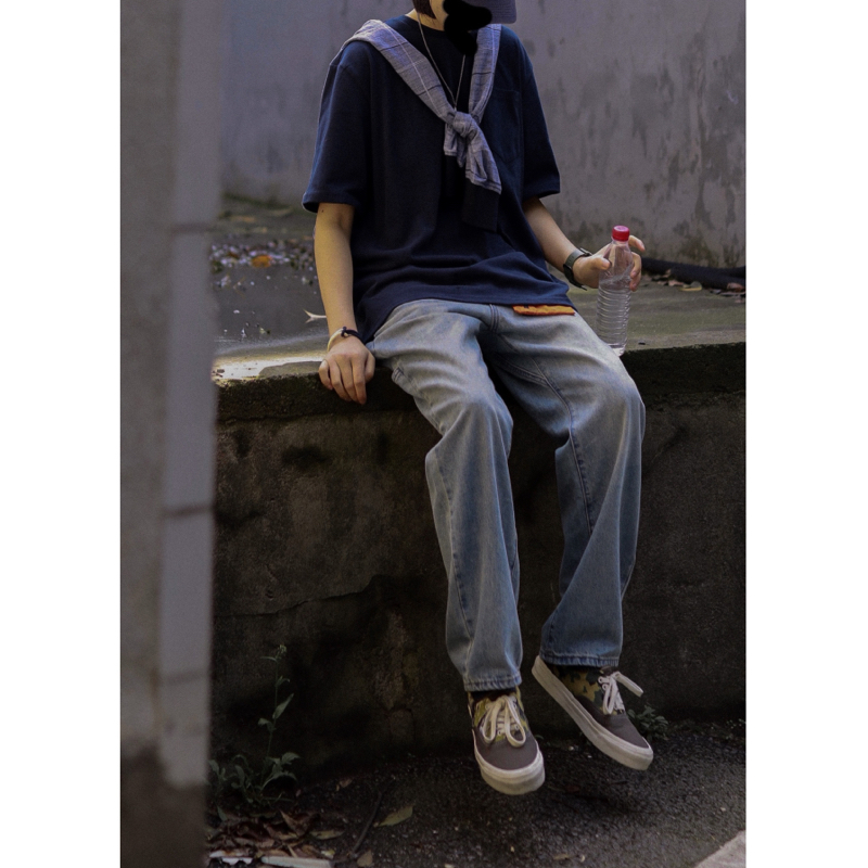 Nobodyknows 日系休闲宽松直筒复古水洗学院男女潮工装裤牛仔长裤