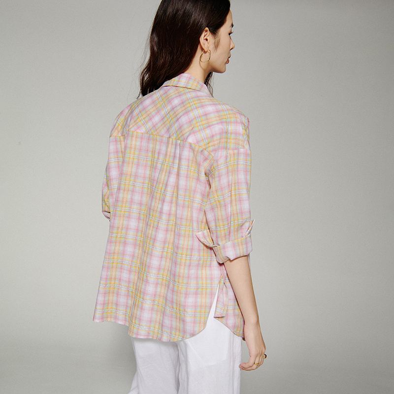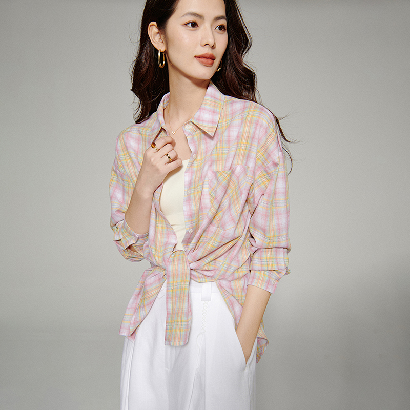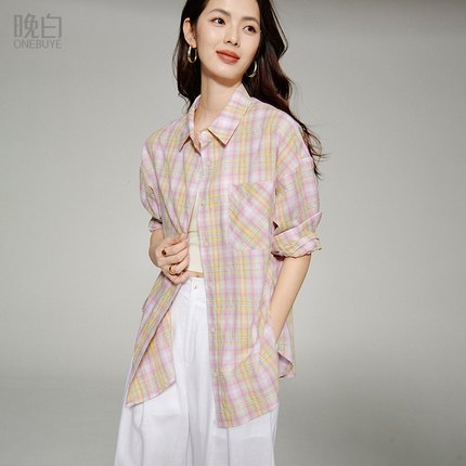 晚白2025年秋新款休闲格纹减龄衬衫宽松亲肤时尚松弛感衬衫女