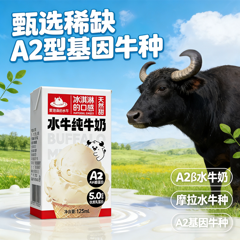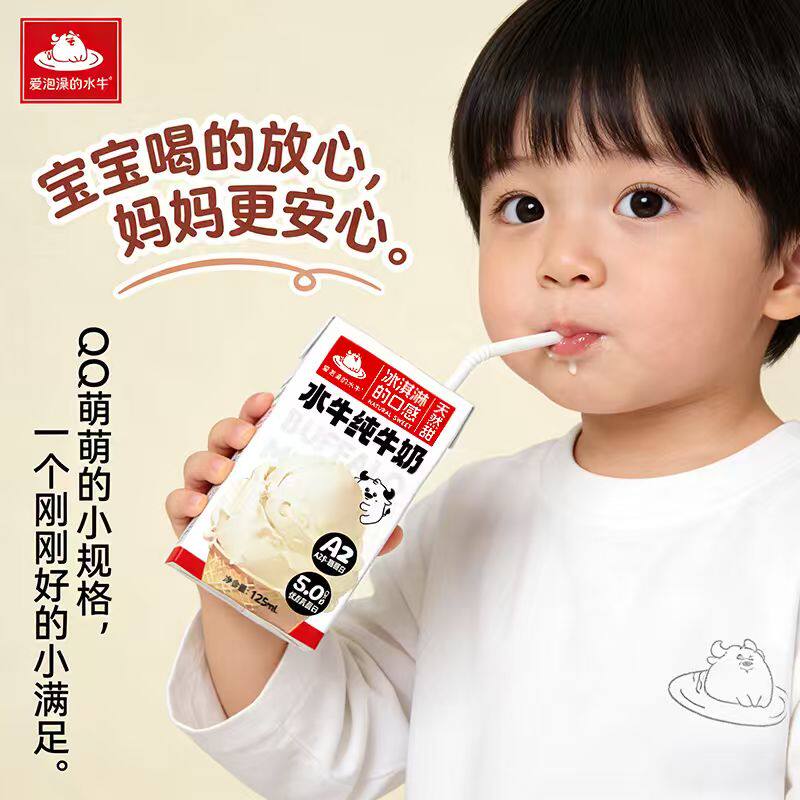 爱泡澡的水牛mini纯牛奶水牛儿童牛奶5.0蛋白125ml*9盒宝宝学生奶