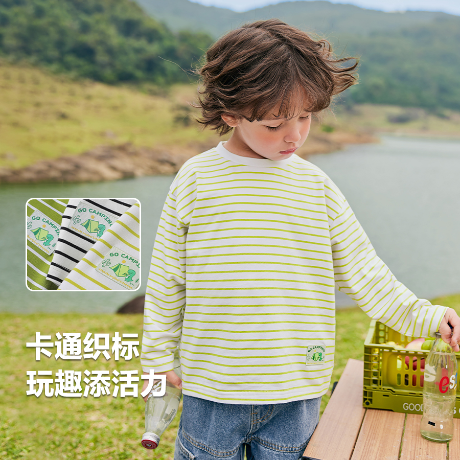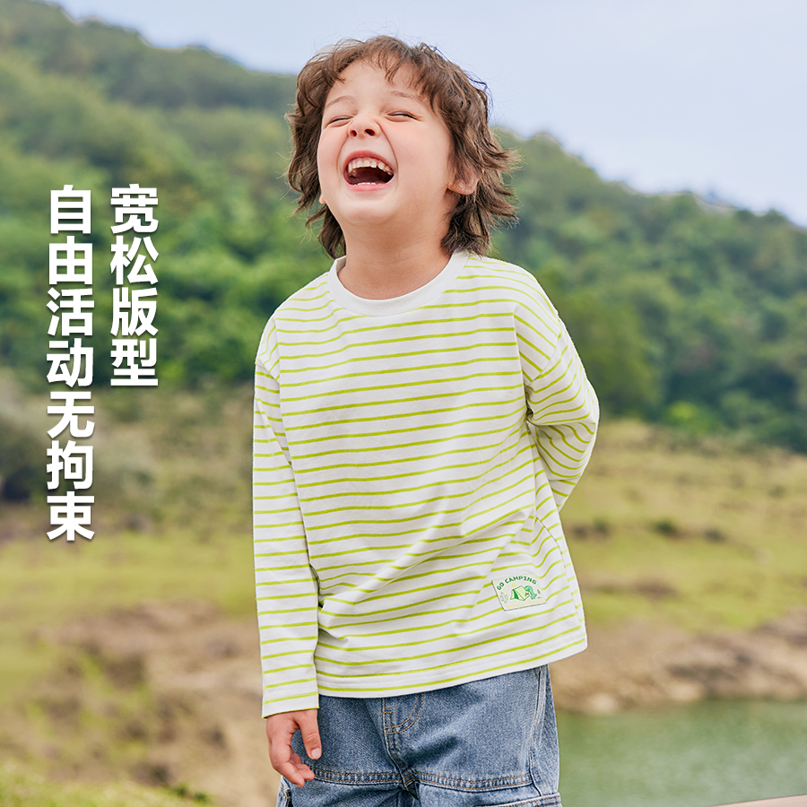 右欧男童打底衫女童长袖T恤条纹高级25春秋新品童装儿童内春季搭
