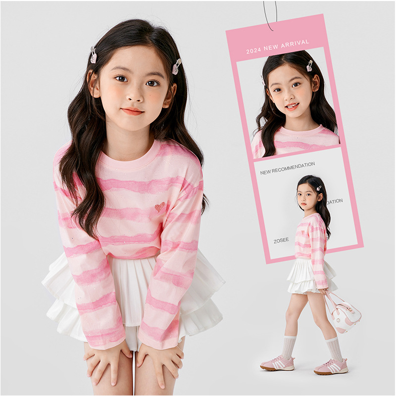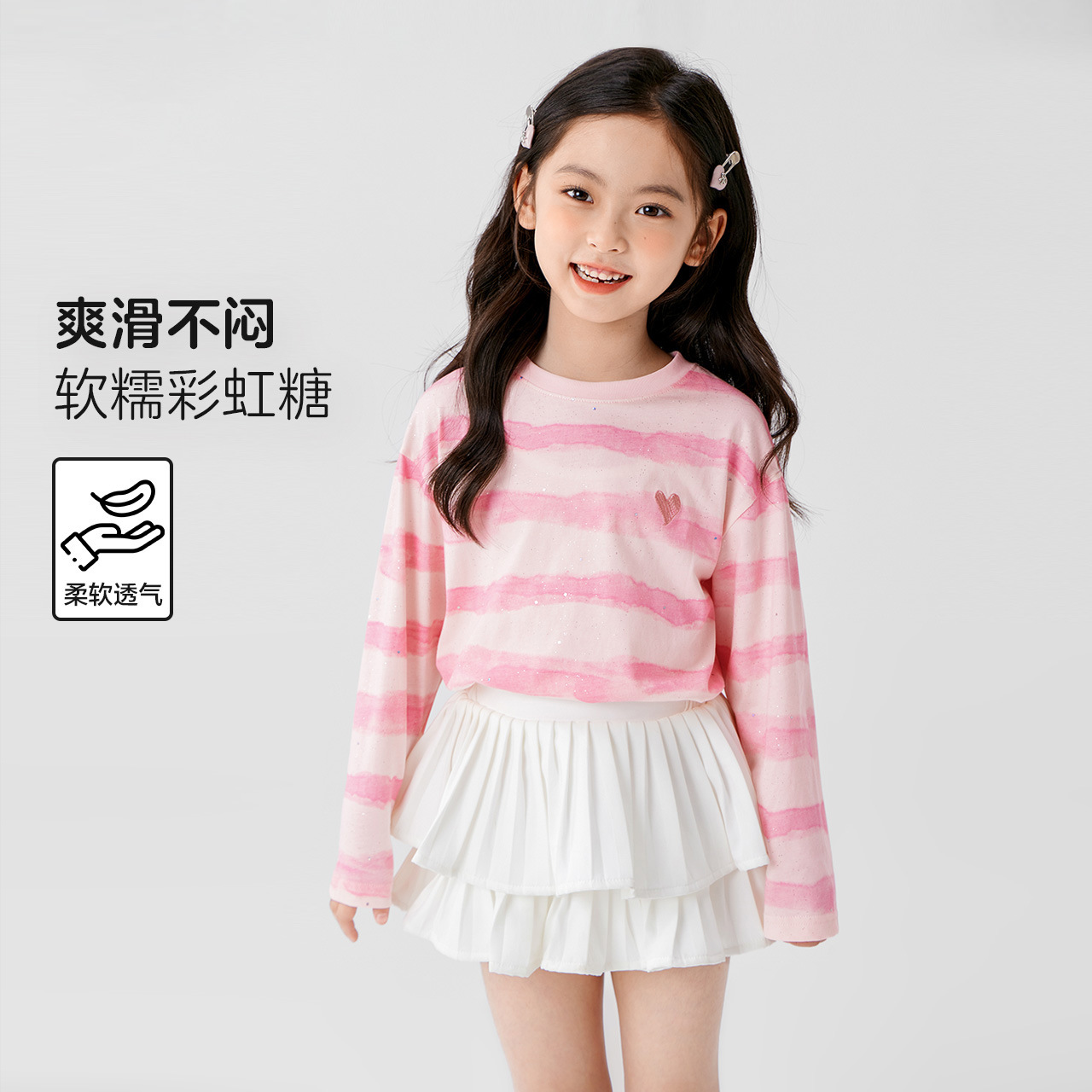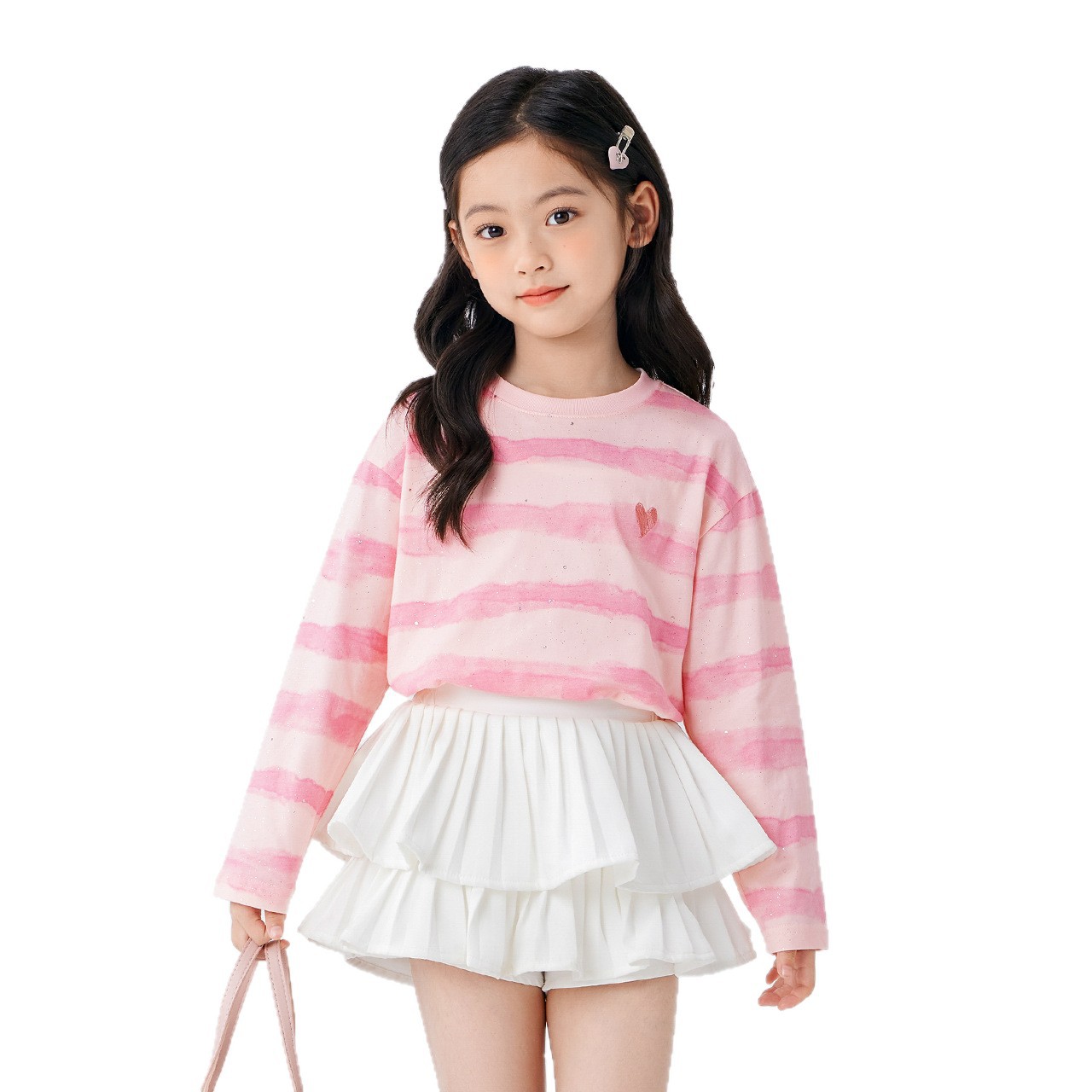 女童长袖T恤2025春秋季条纹打底甜美可爱女孩中小童秋装儿童上衣