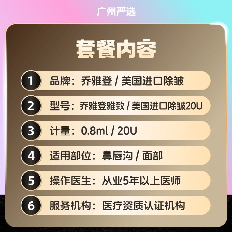【广州到店医美】乔雅登雅致玻尿酸/美国进口除皱20u双除皱