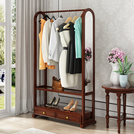实木衣帽架落地卧室现代简约家用衣架穿衣服挂衣架一体房间置物架