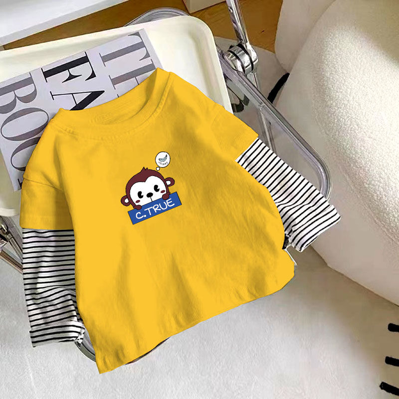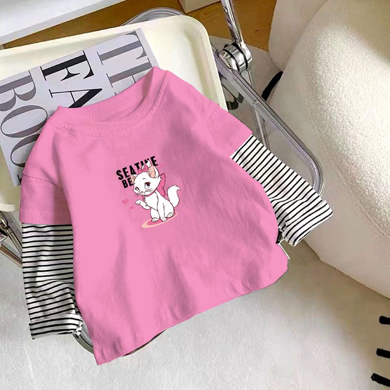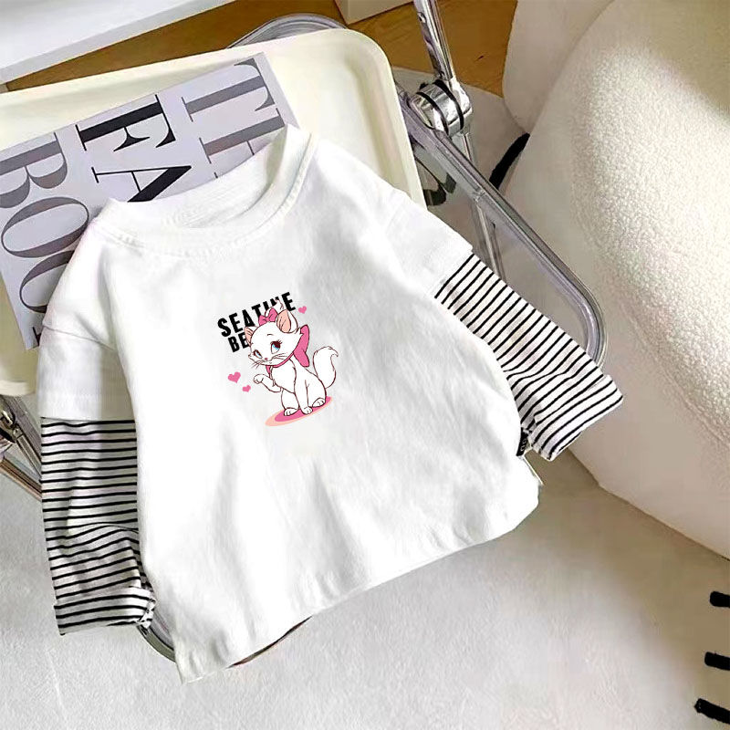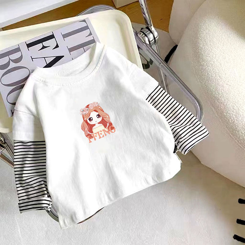 2025春秋装打底衫t恤中大童装新款男女童长袖条纹拼接上衣