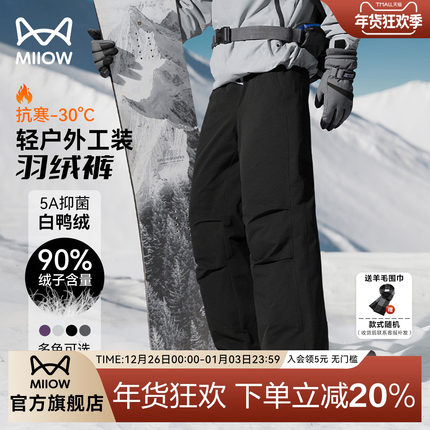 猫人羽绒裤外穿男款户外运动登山滑雪裤冬季宽松工装直筒伞兵裤子