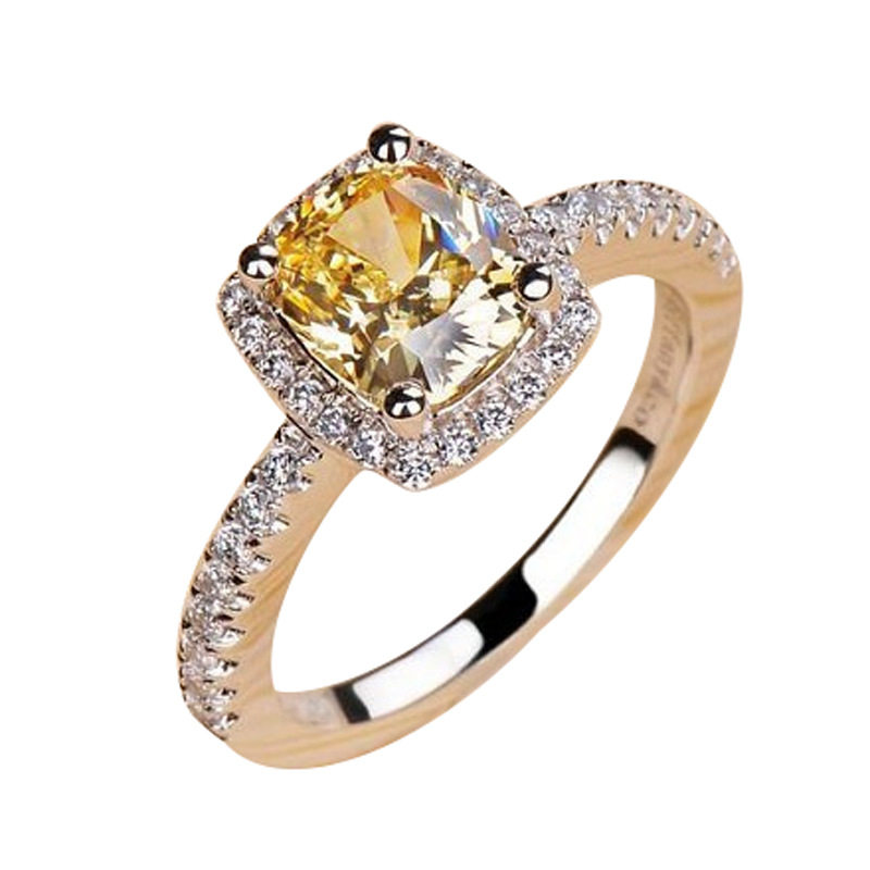 纯银戒指女款四爪黄白粉仿真钻戒