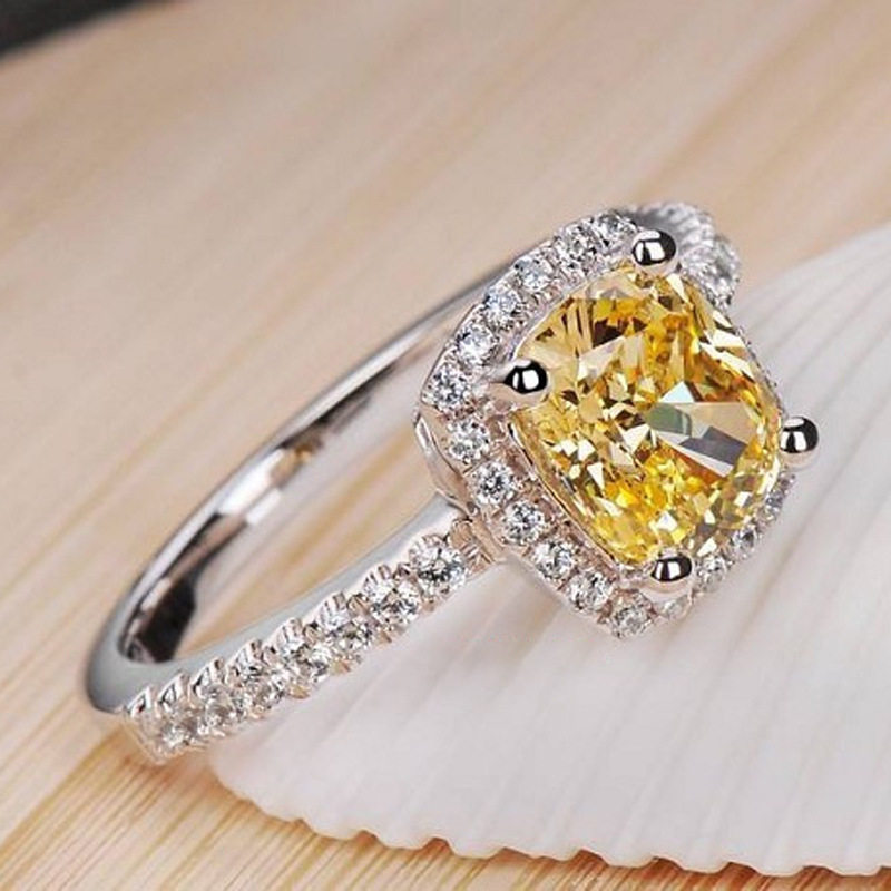 纯银仿真钻戒四爪黄钻锆石食指戒指女款超闪潮人指环个性饰品简约