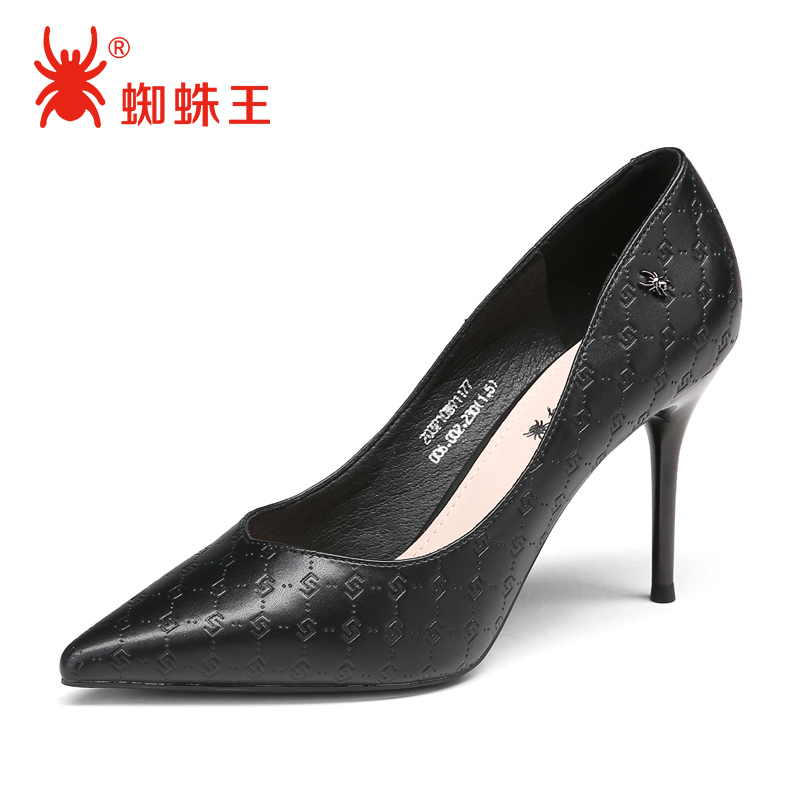 蜘蛛王女鞋秋季2020新款正装职业鞋女百搭尖头通勤细跟黑色高跟鞋