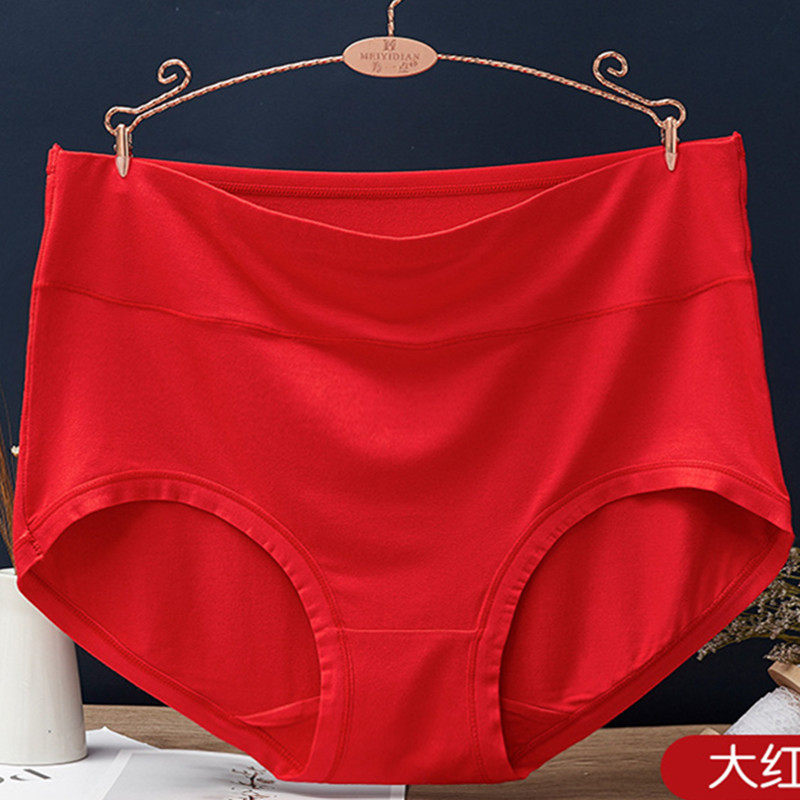 4条超大码内裤女胖mm200-300斤中高腰老年人妈妈莫代尔红色本命年