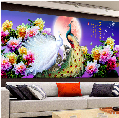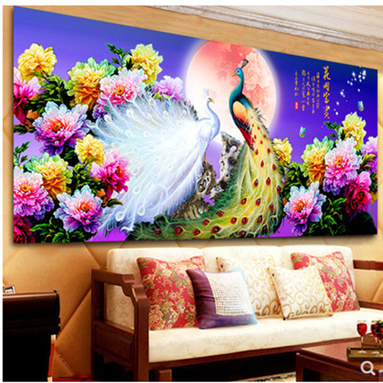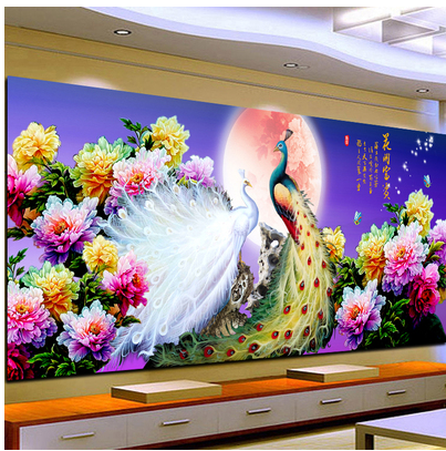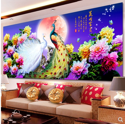 串珠十字绣花开富贵牡丹全珠绣孔雀彩珠绣客厅满绣丝线穿珠子大幅