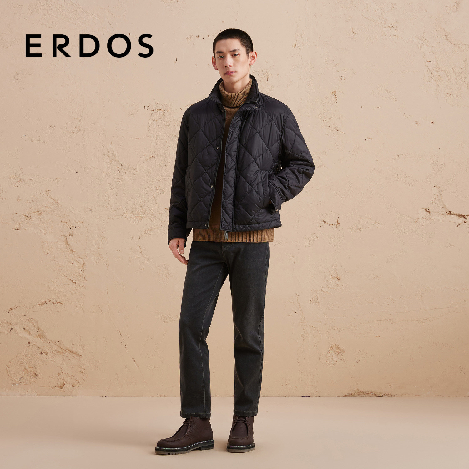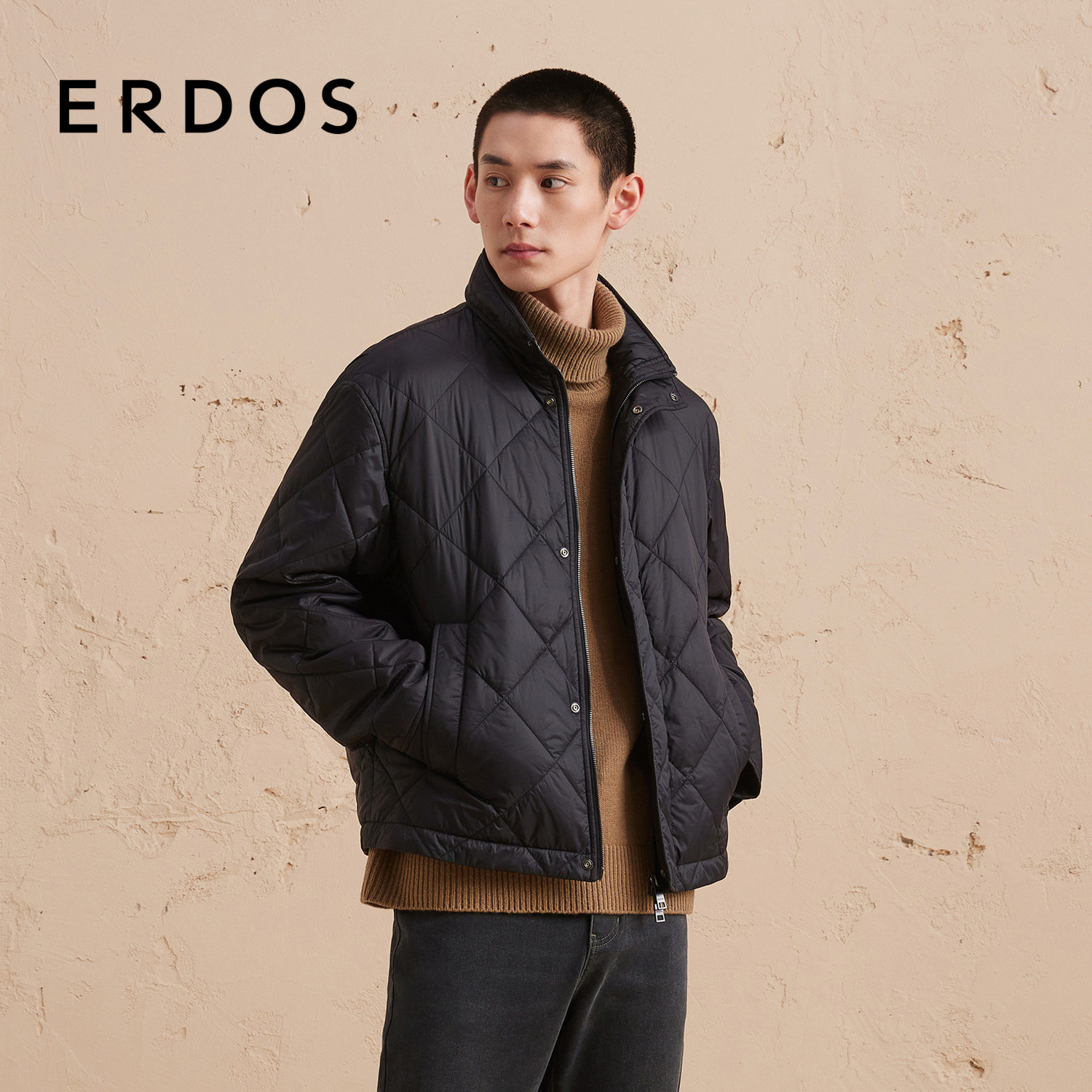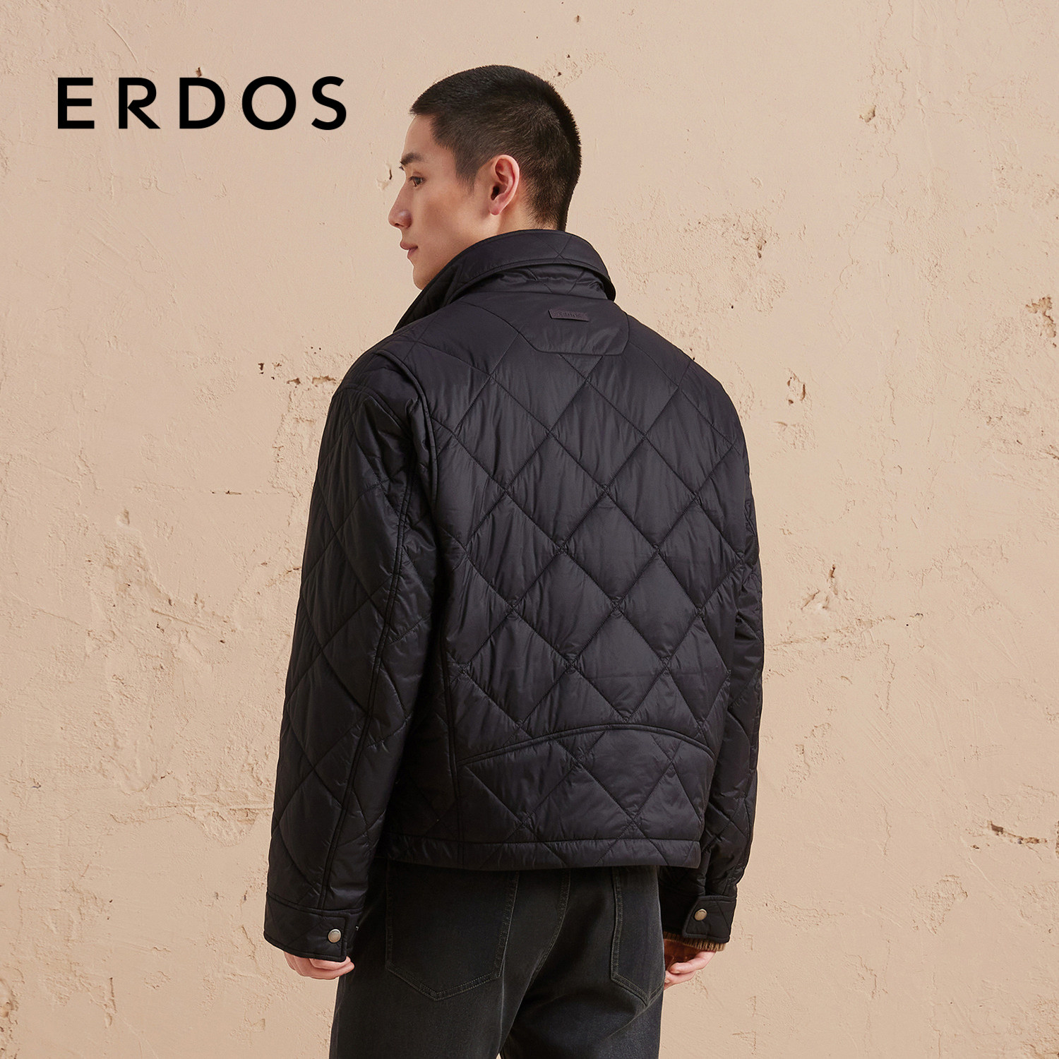 ERDOS 短款立领棉服秋冬男士格型复古机车保暖外套