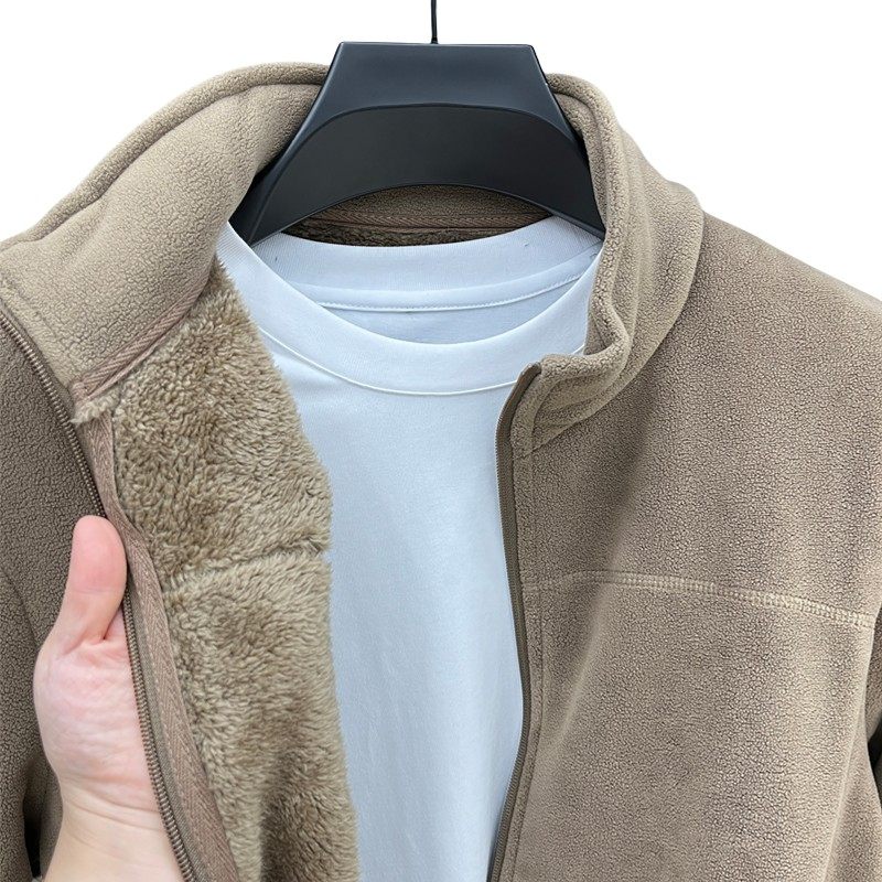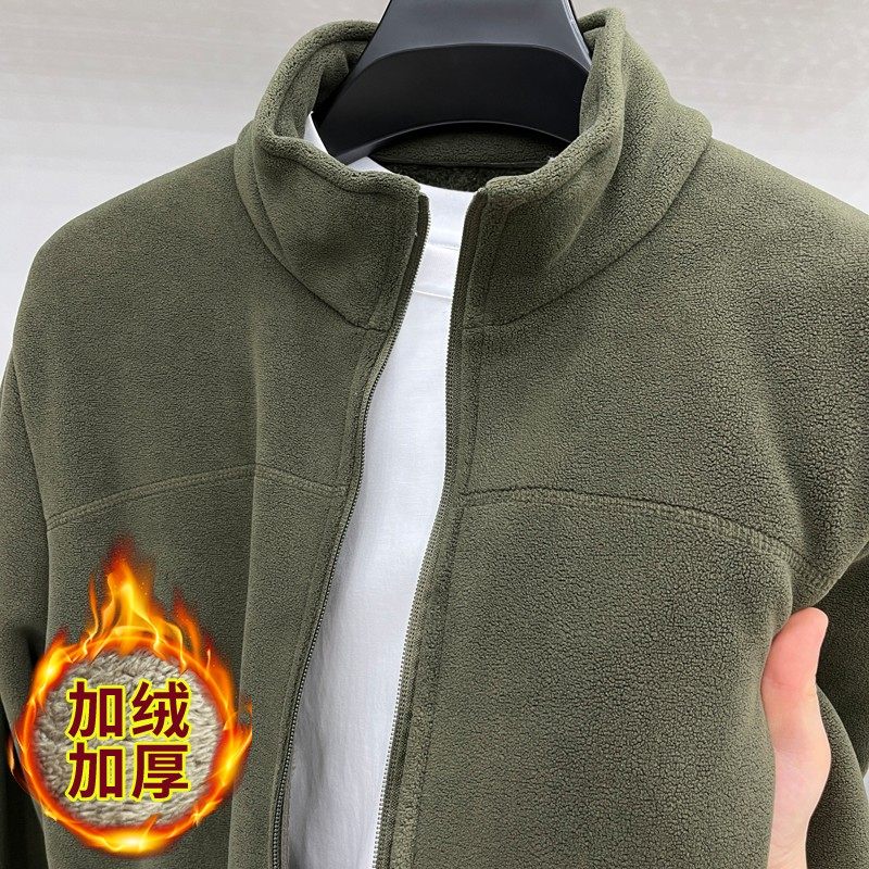 罗蒙抓绒衣男秋冬新款立领夹克双面加绒加厚摇粒绒外套男保暖上衣