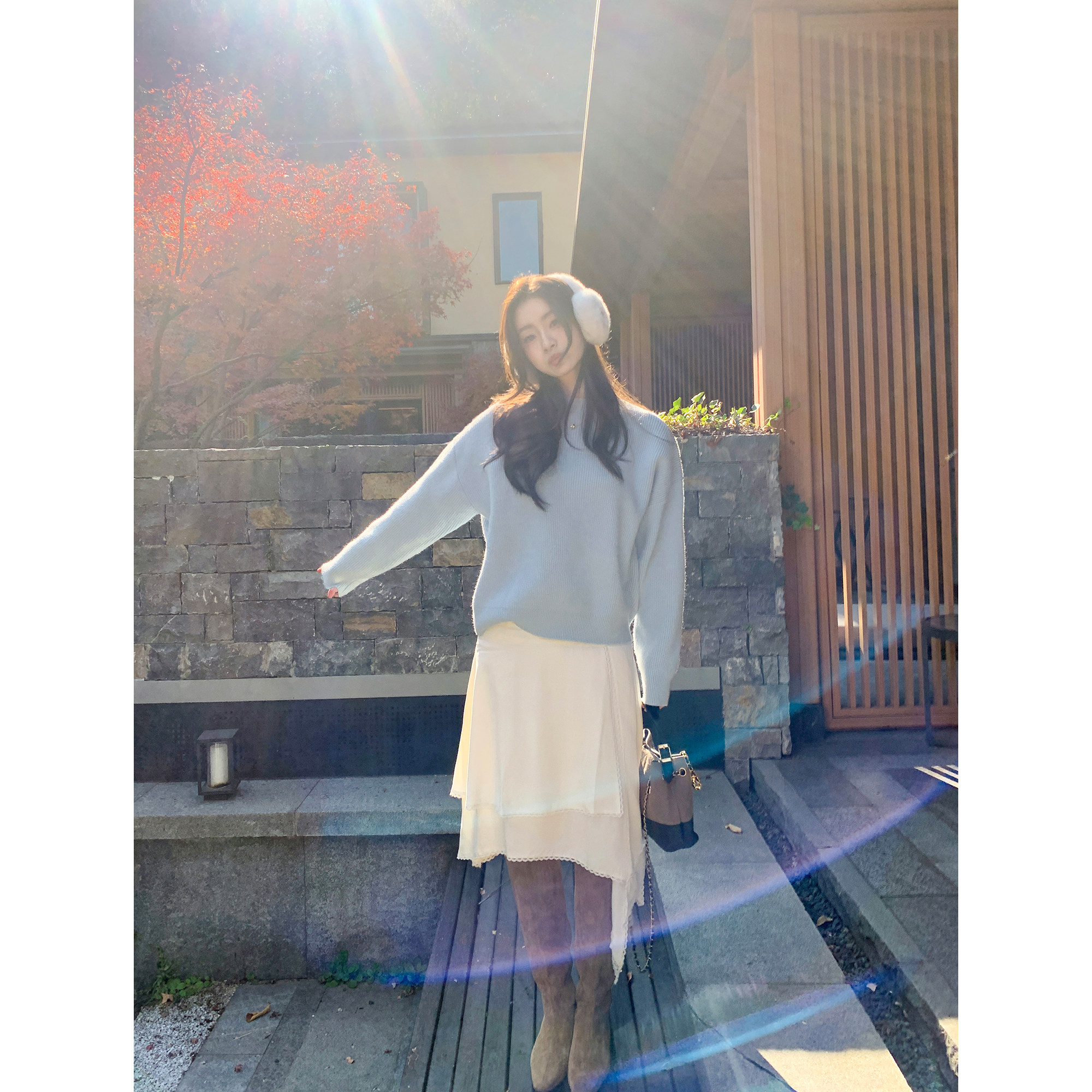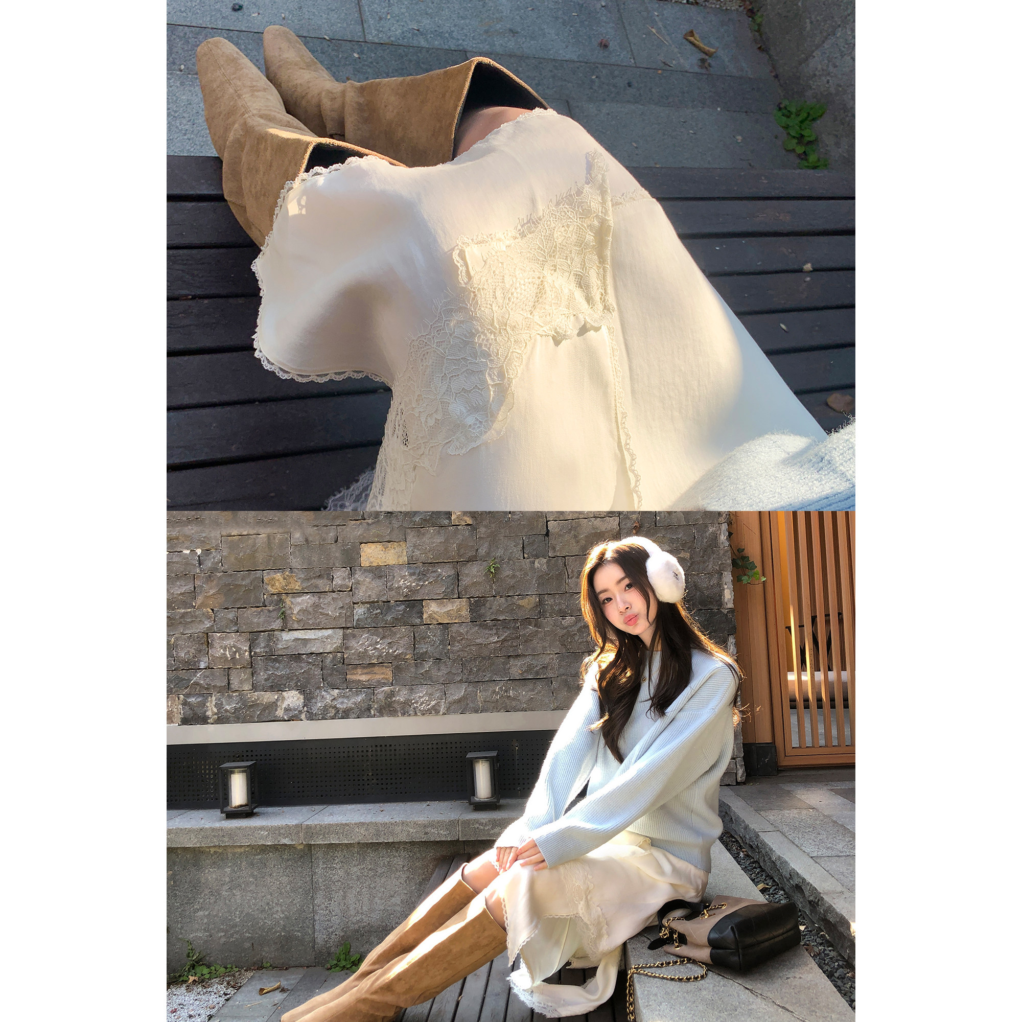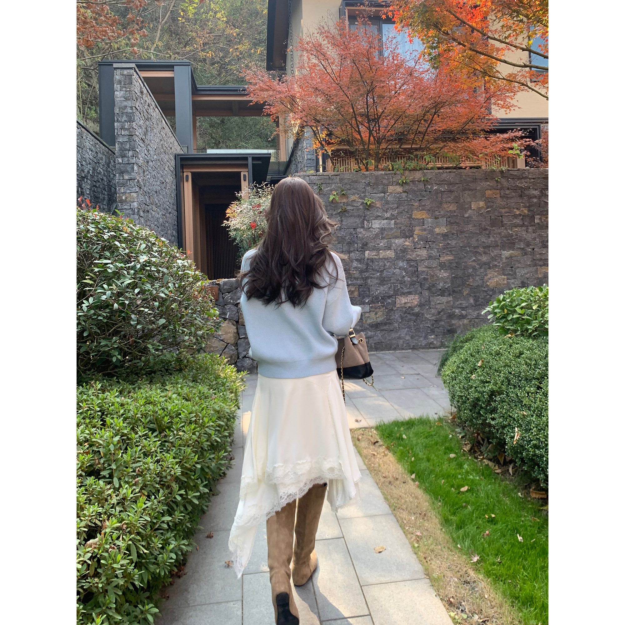 pusumede 仙德瑞拉 莱赛尔蕾丝花边半身裙女气质优雅不规则中长裙